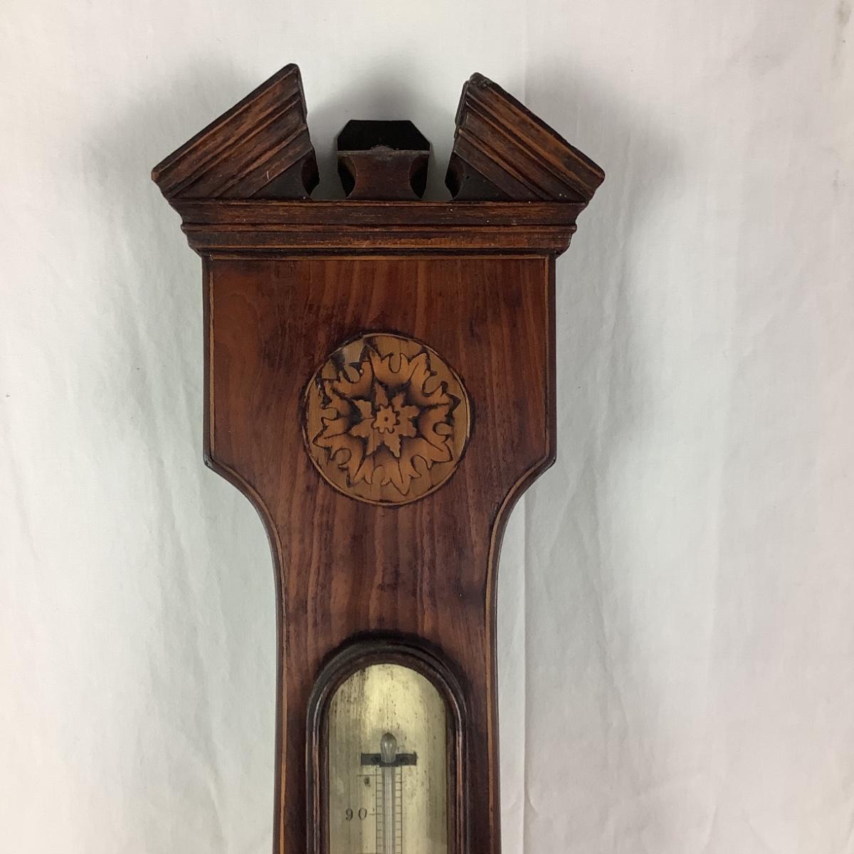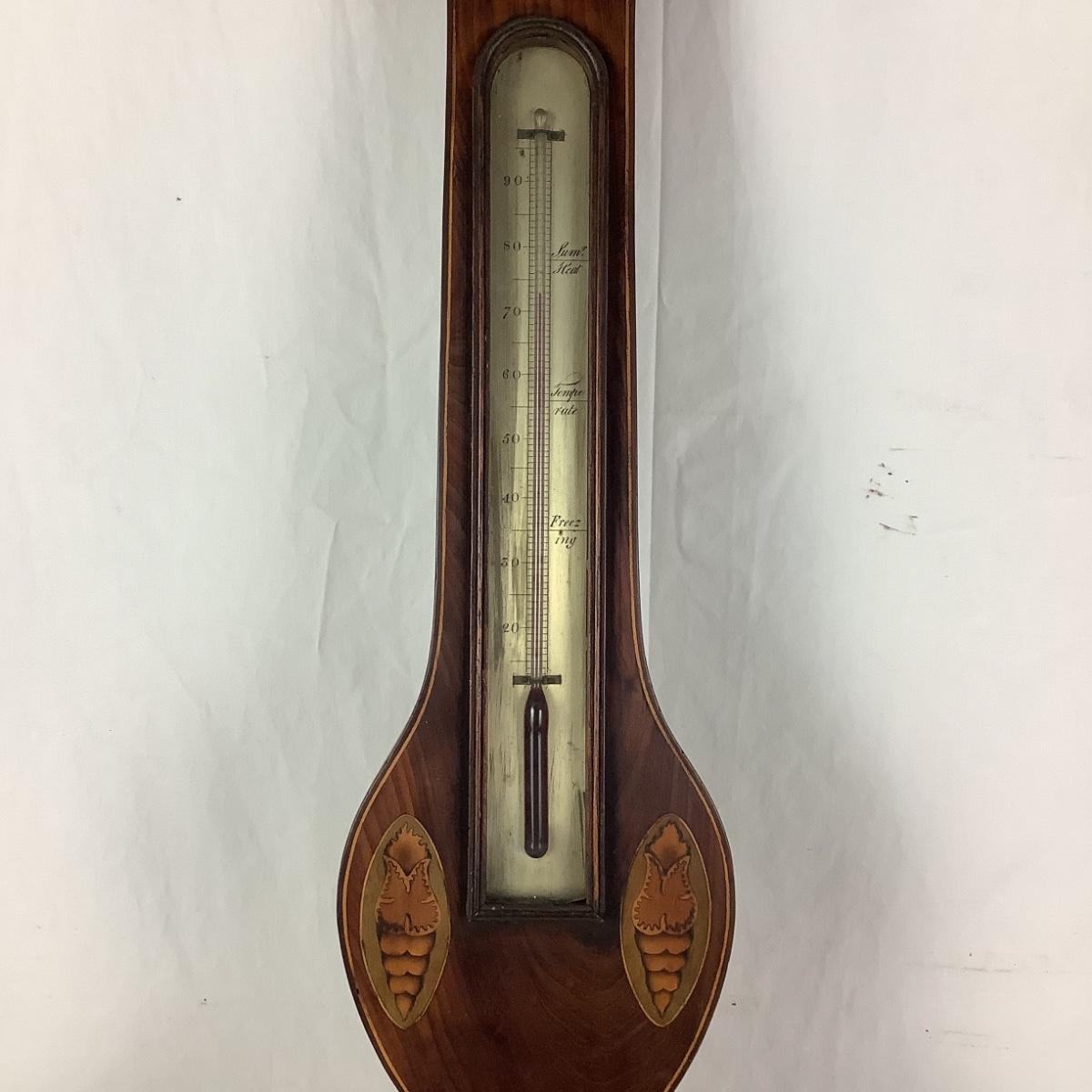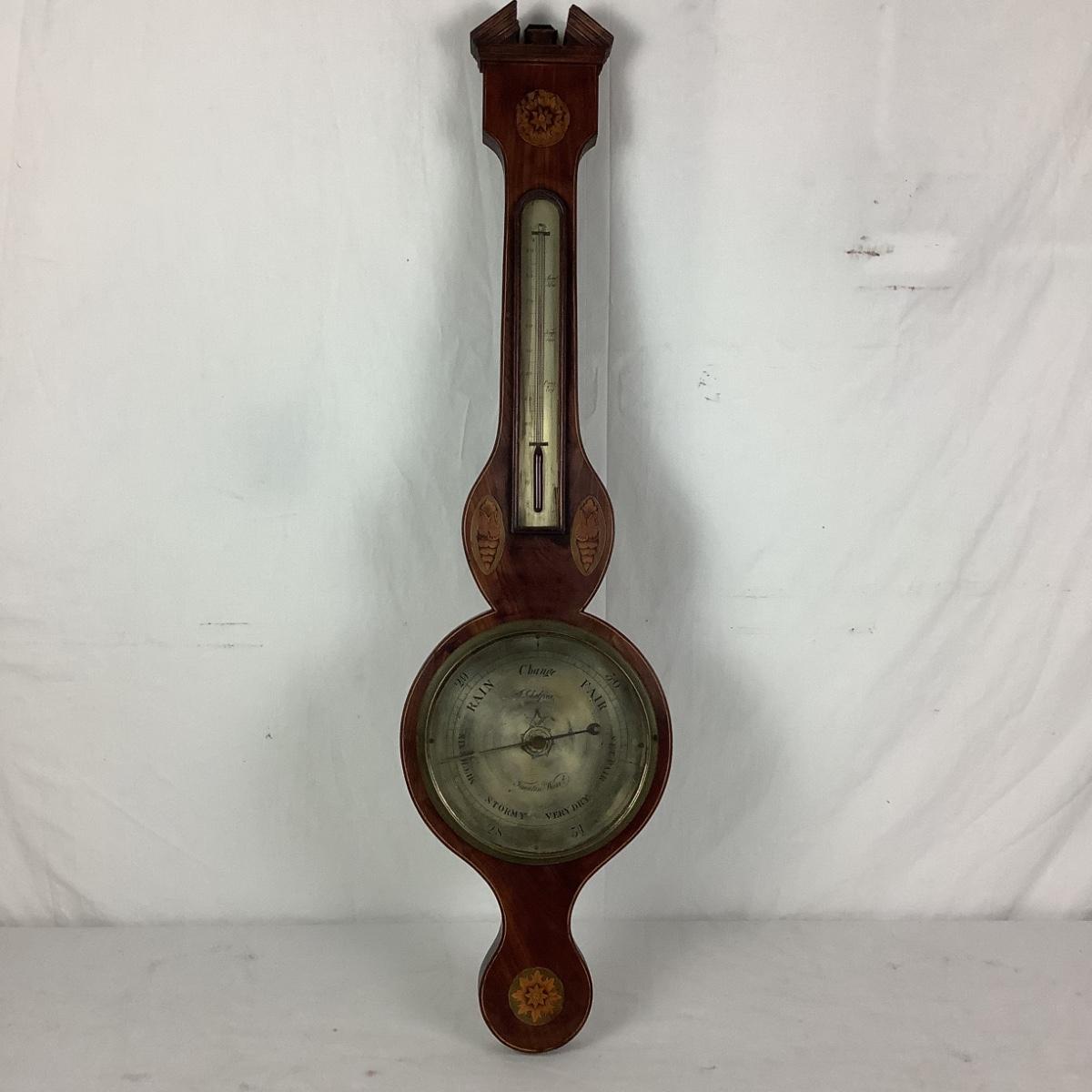 990 19th Century Antique Mahogany Cased Wheel Barometer & Thermometer by J. Schalfino