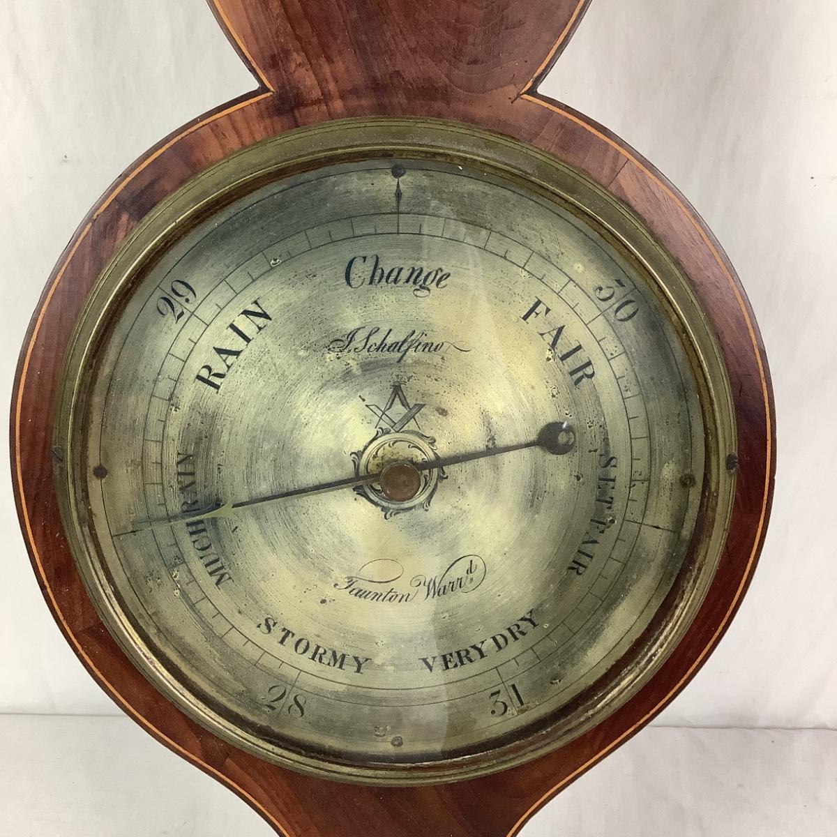 19th Century Antique Mahogany Cased Wheel Barometer & Thermometer by J. Schalfino