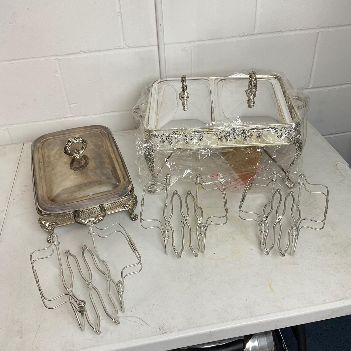 990 Two Chafing Dishes and Adjustable Dish Holder
