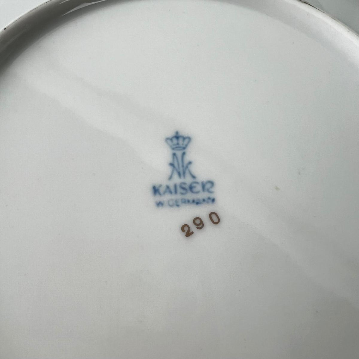 Kaiser pattern #290, 18 pieces, 6 plates (7.75”Diameter), 6 bowls (5.25”Diameter), 6 cups (3.5”H).
