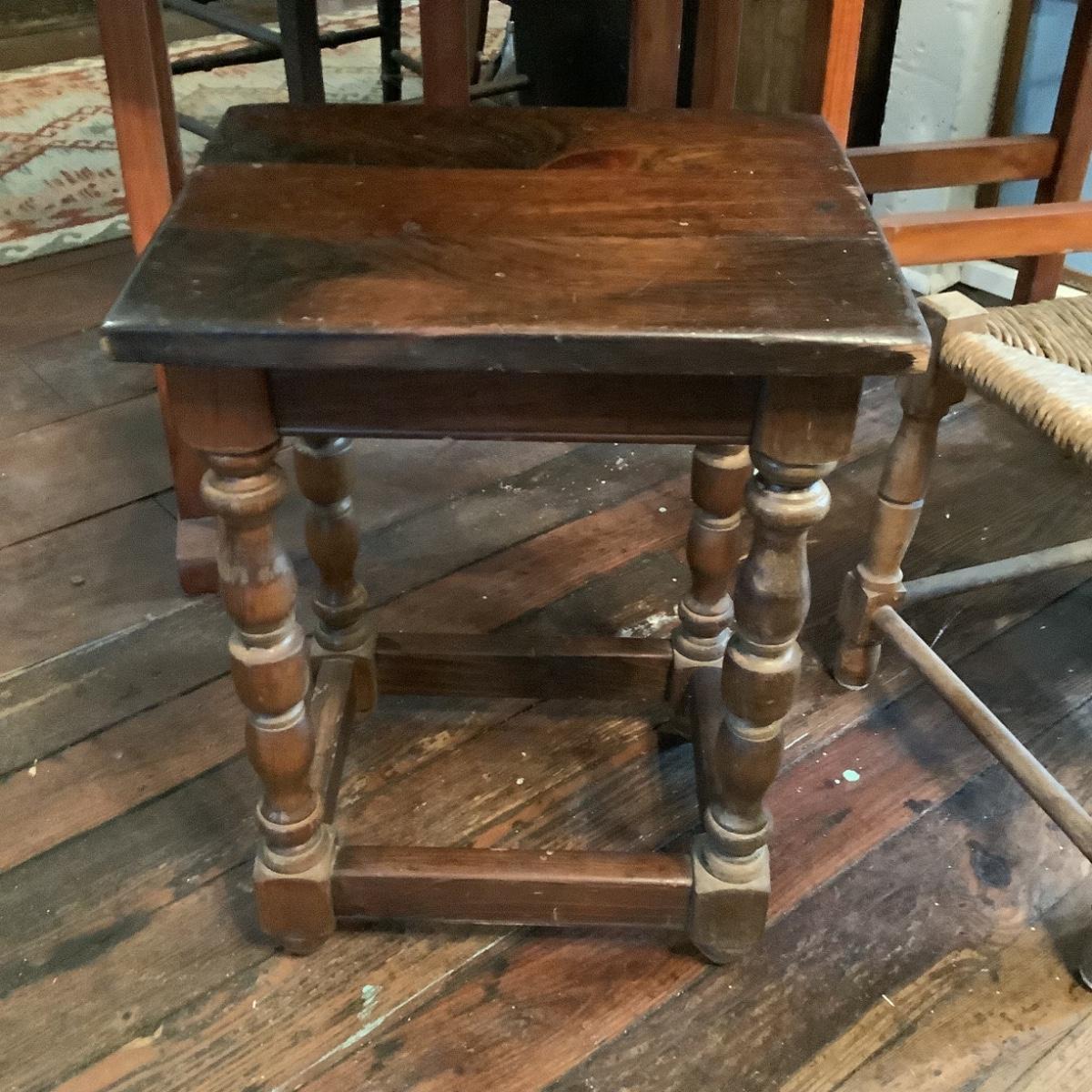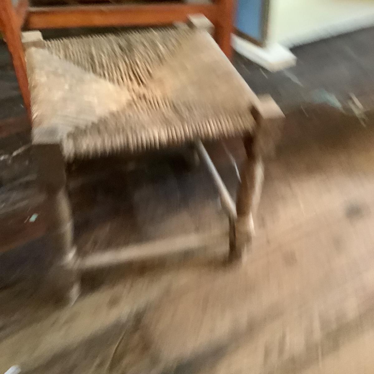 993 Vintage Rush Seat Stool with English Joint Footstool / Table