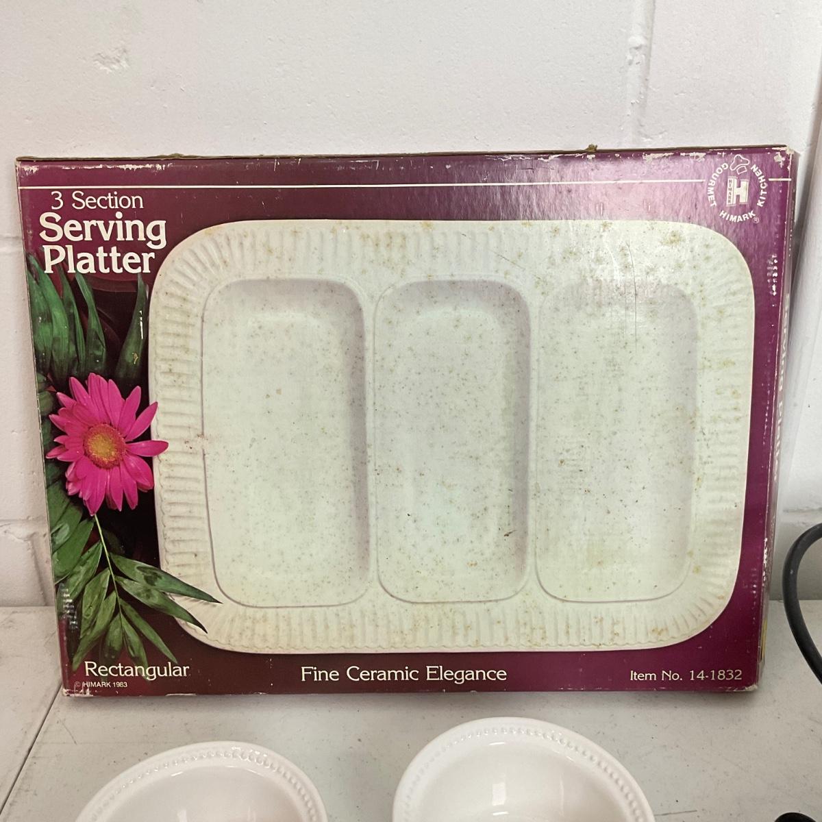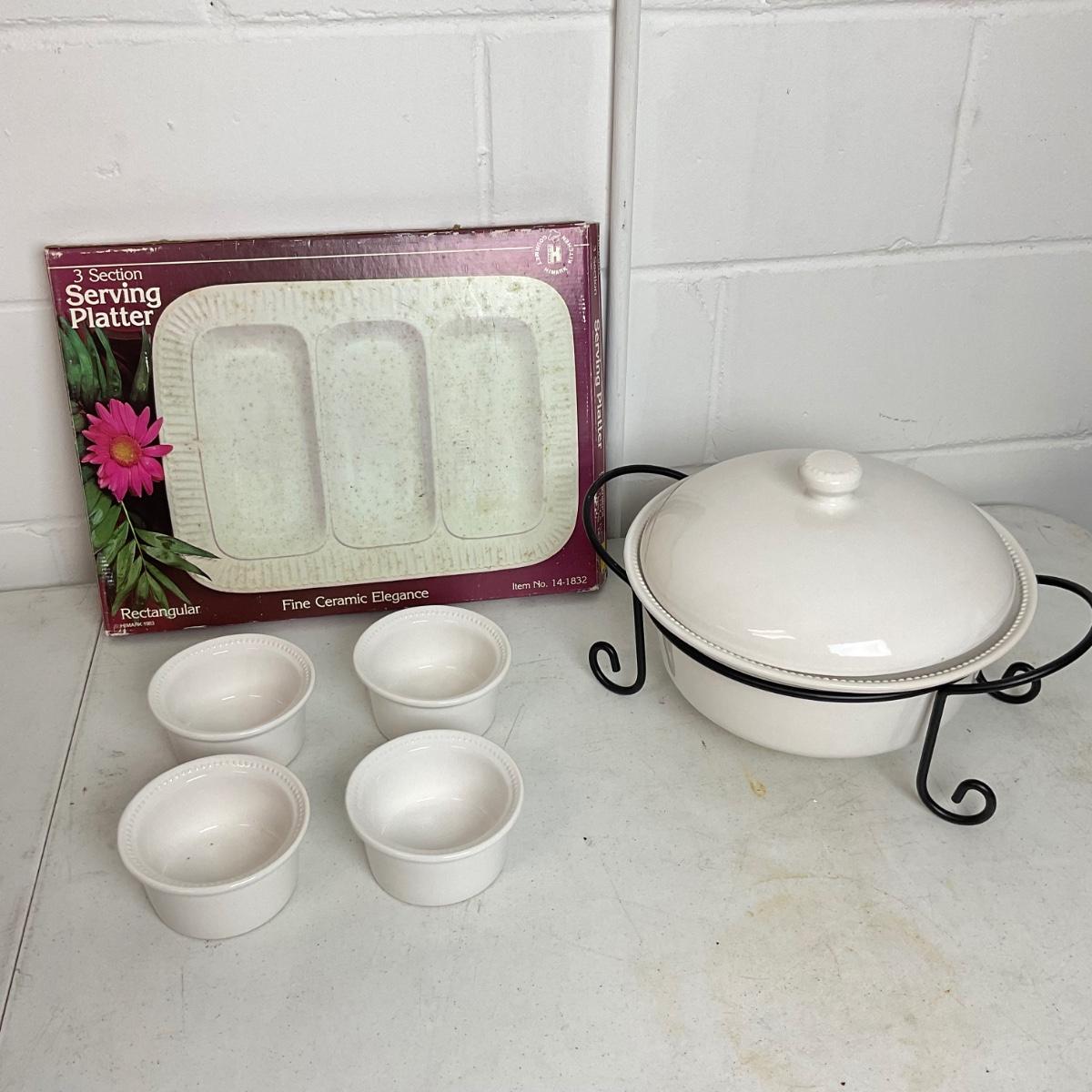 993 White Ceramic Covered Serving Dish with Platters and Bowls
