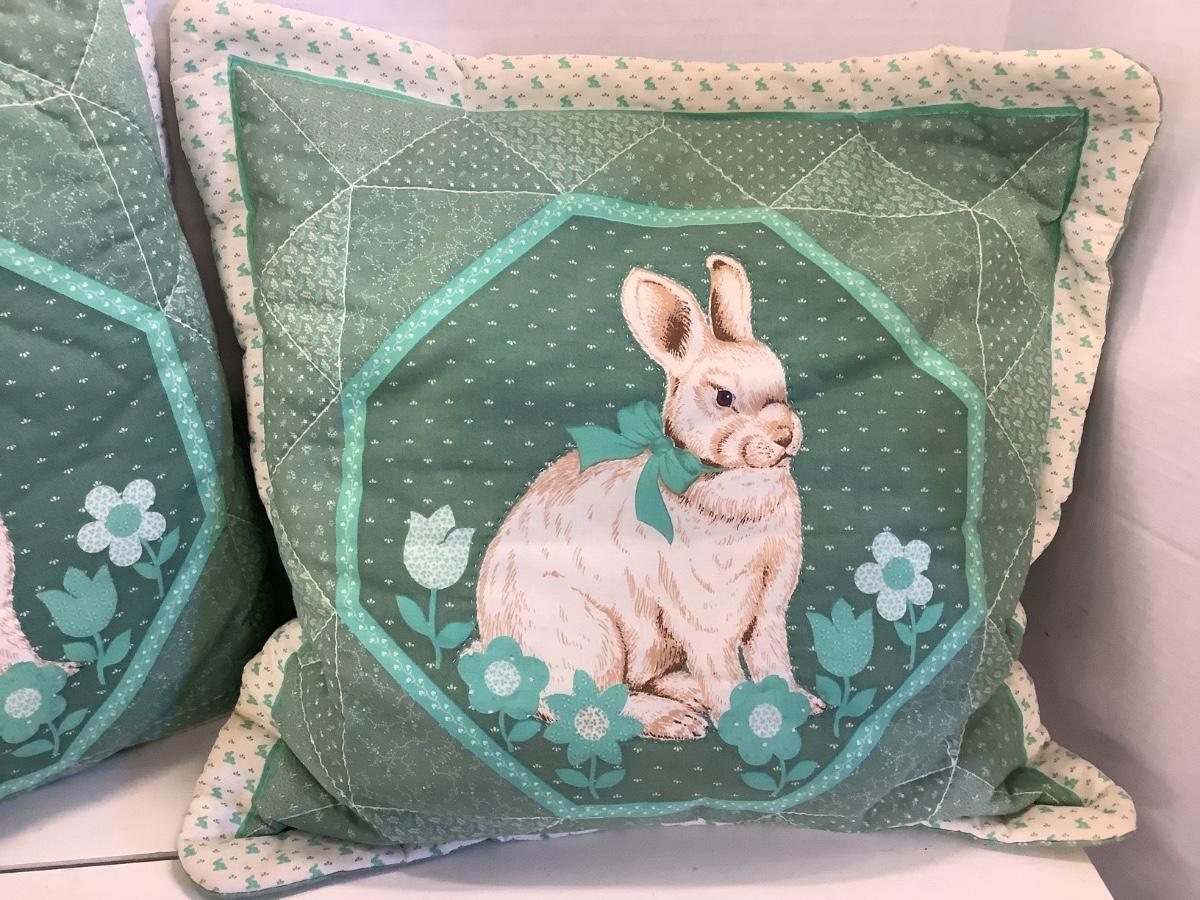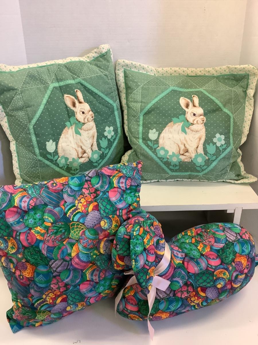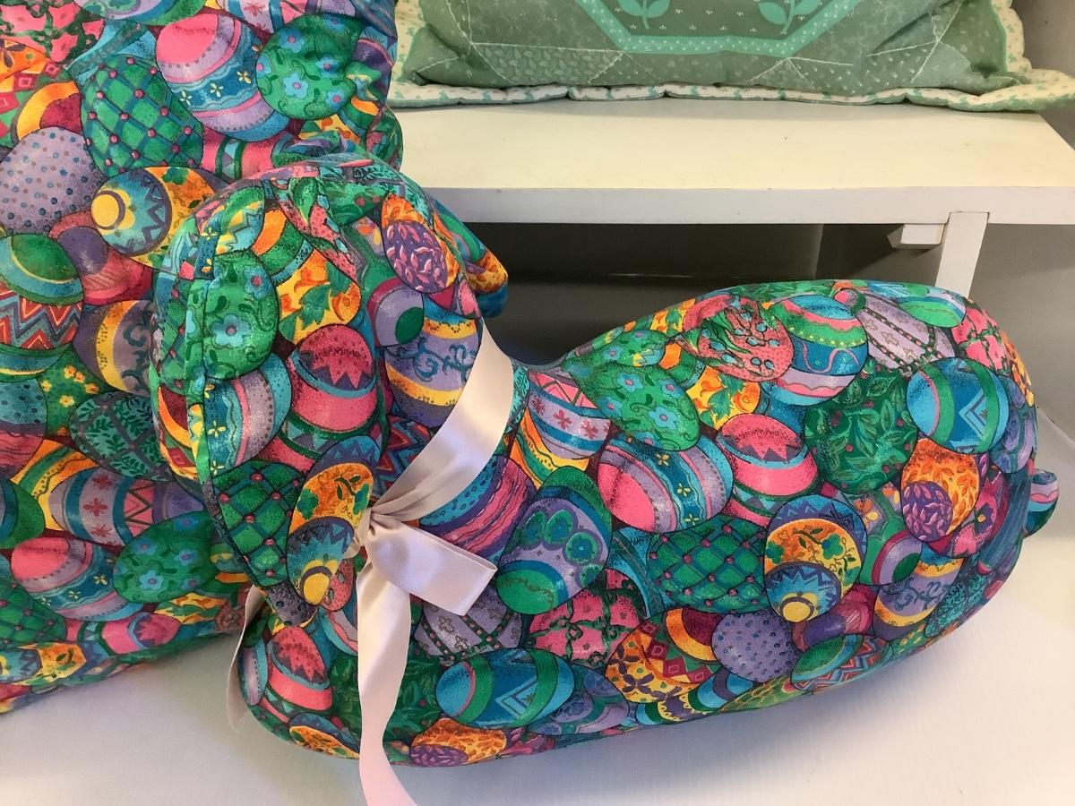 Easter egg weighted bunny doorstop with 14" square easter egg pillows