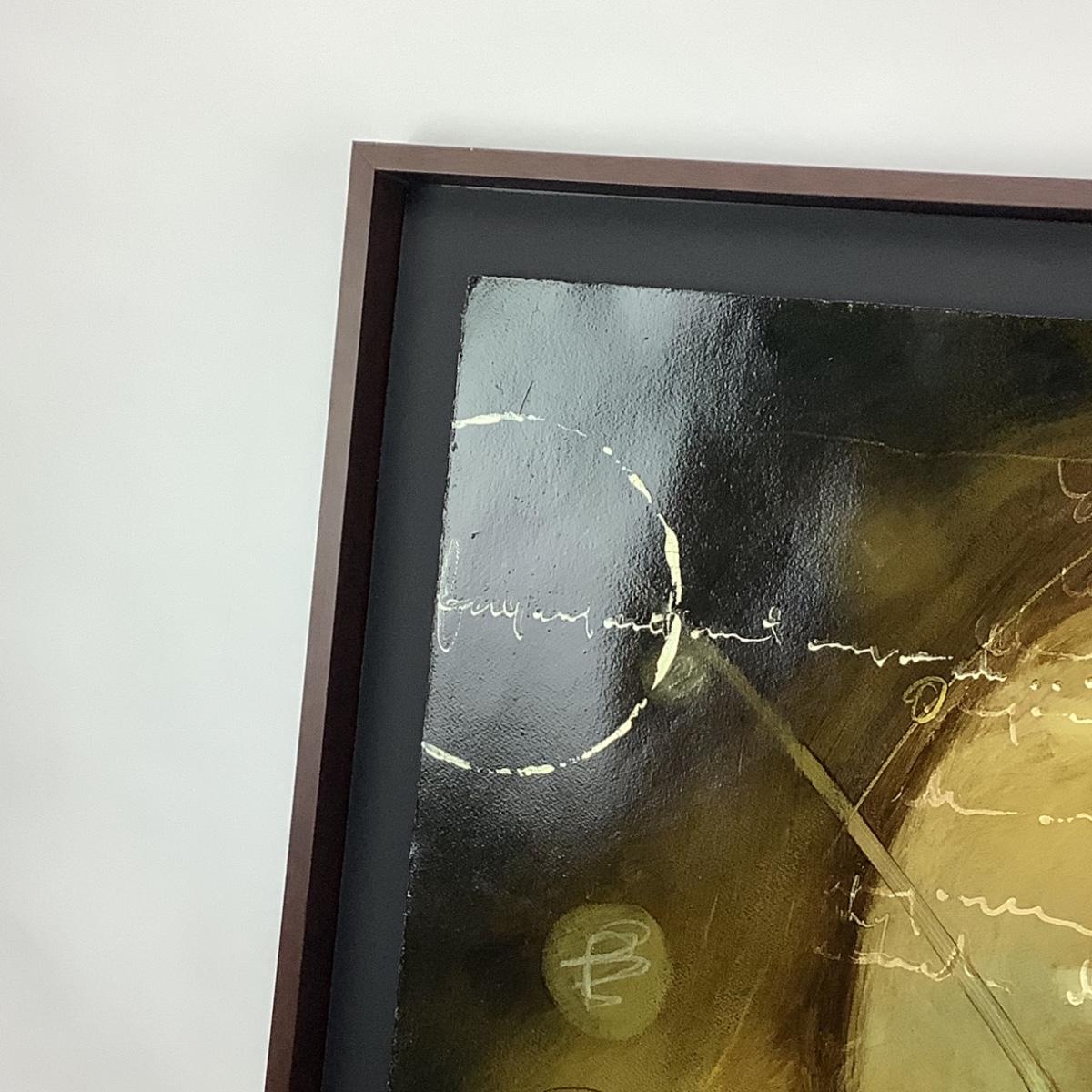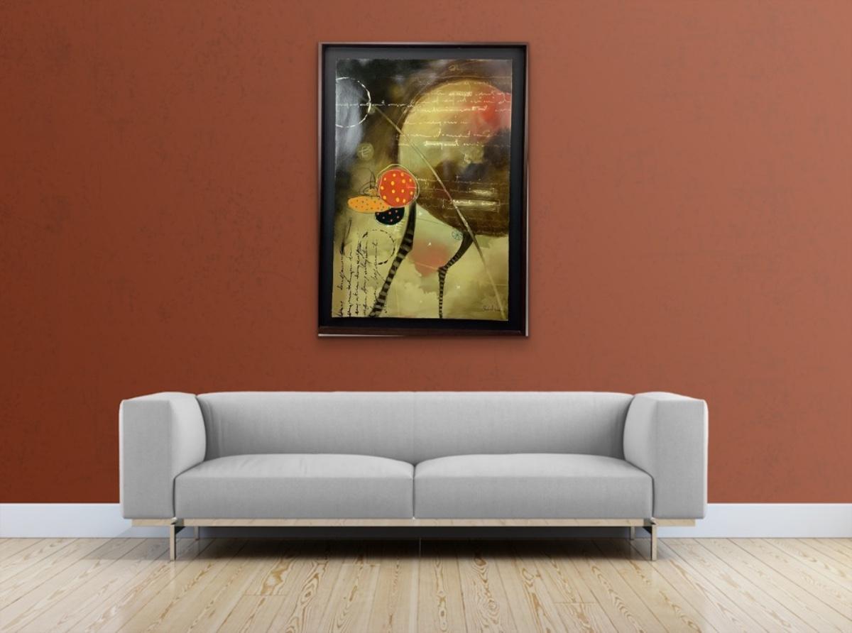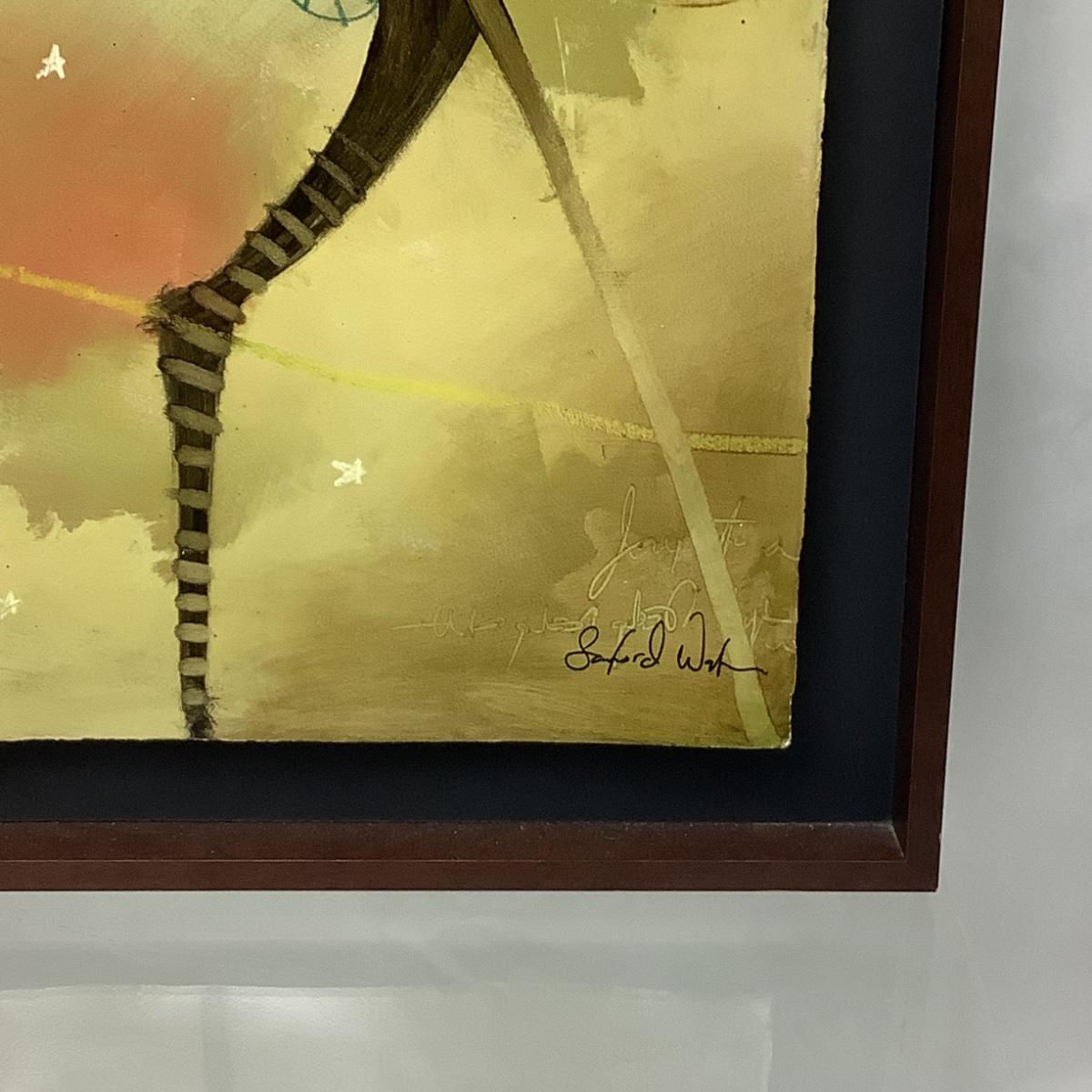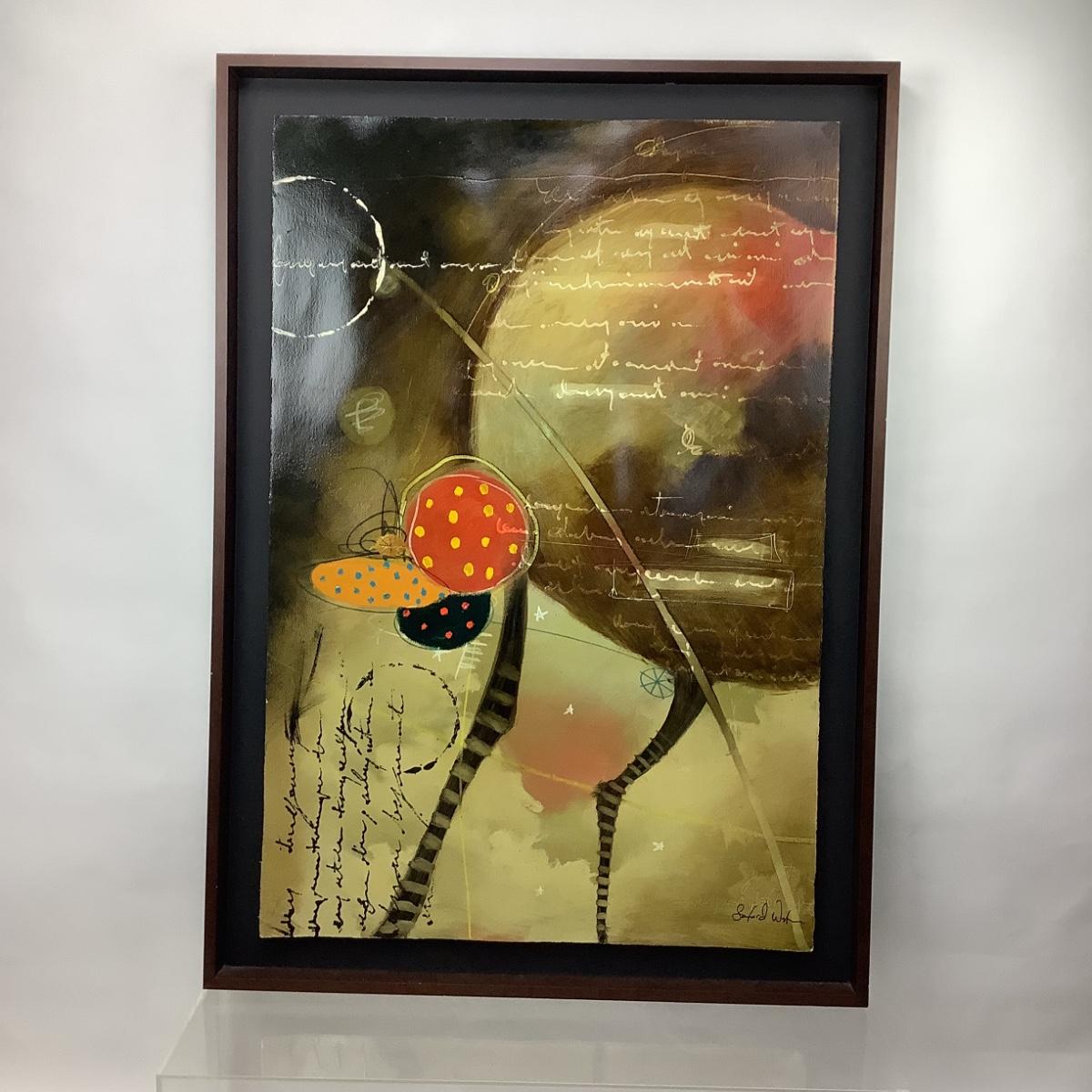 The acrylic painting on paper is large and mounted in a shadow box type frame with no glass. It measures 35.5" wide x 49.5" high. The artist Sanford Wakeman (born 1969) he concentrates on surreal sense of vitality-a life within the non-living. Educated at the University of Georgia Fine Arts, and the Savannah College of Art & Design. This is a large statement art piece.