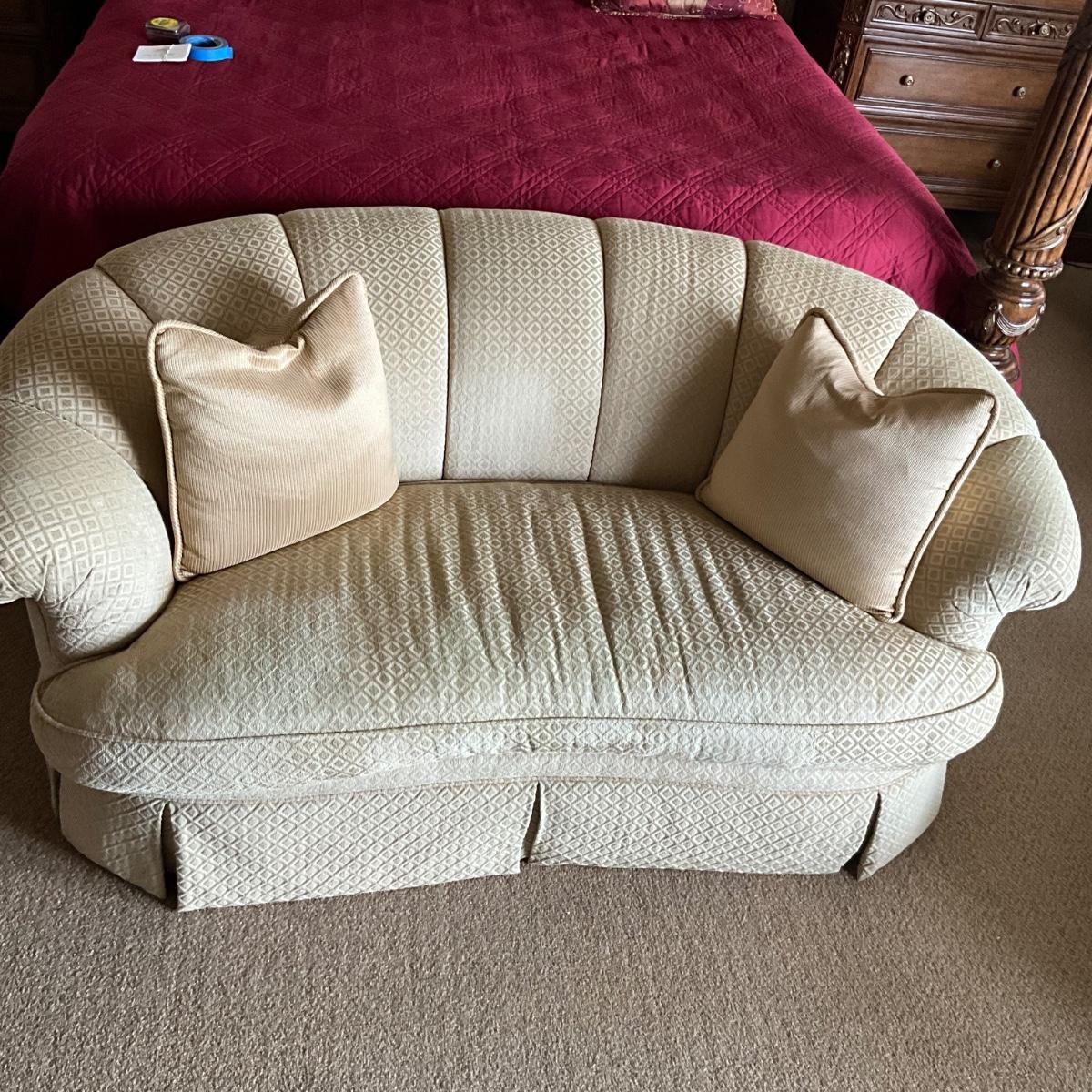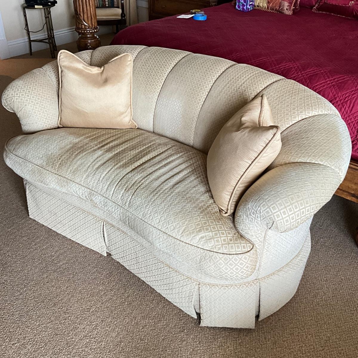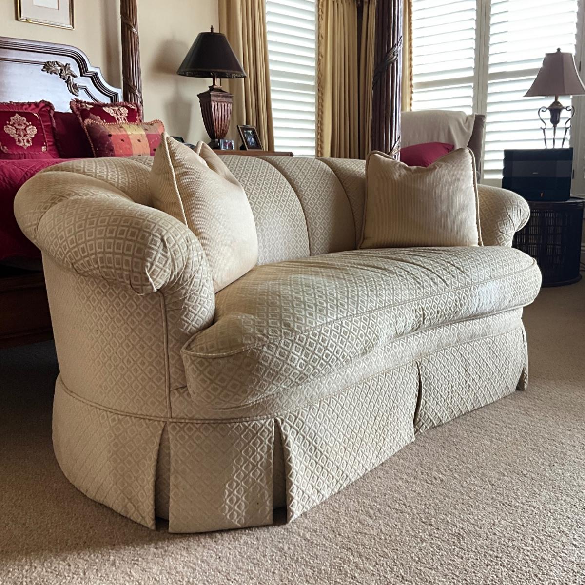 The upholstery on this sofa is very clean and in light cream color