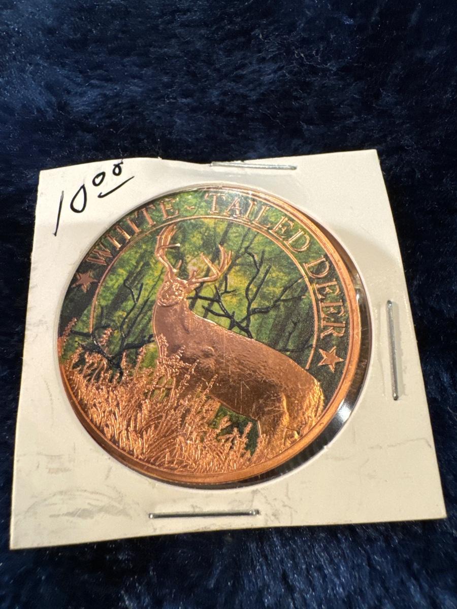 .999 Fine Cooper U S coin white tailed deer back side see pics