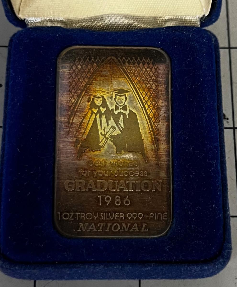 .999 ONE OUNCE SILVER BAR GRADUATION 1986.