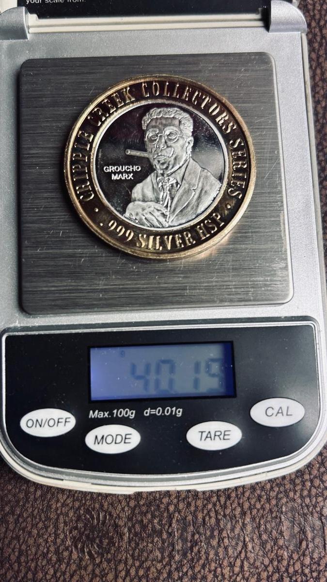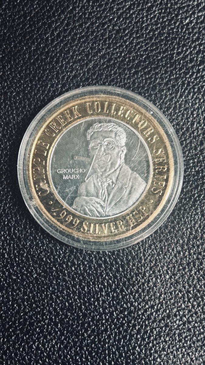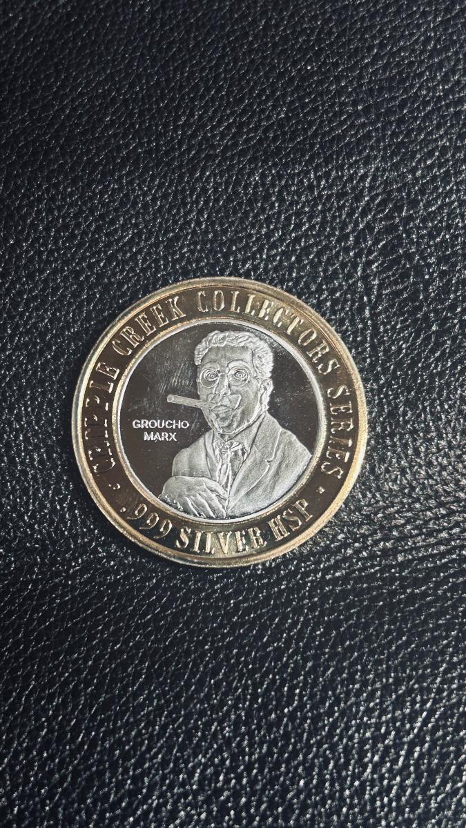 .999 SILVER HSP “GROUCHO MARX” GAMING TOKEN FROM JOHNNY NOLANS IN CRIPPLE CREEK, CO