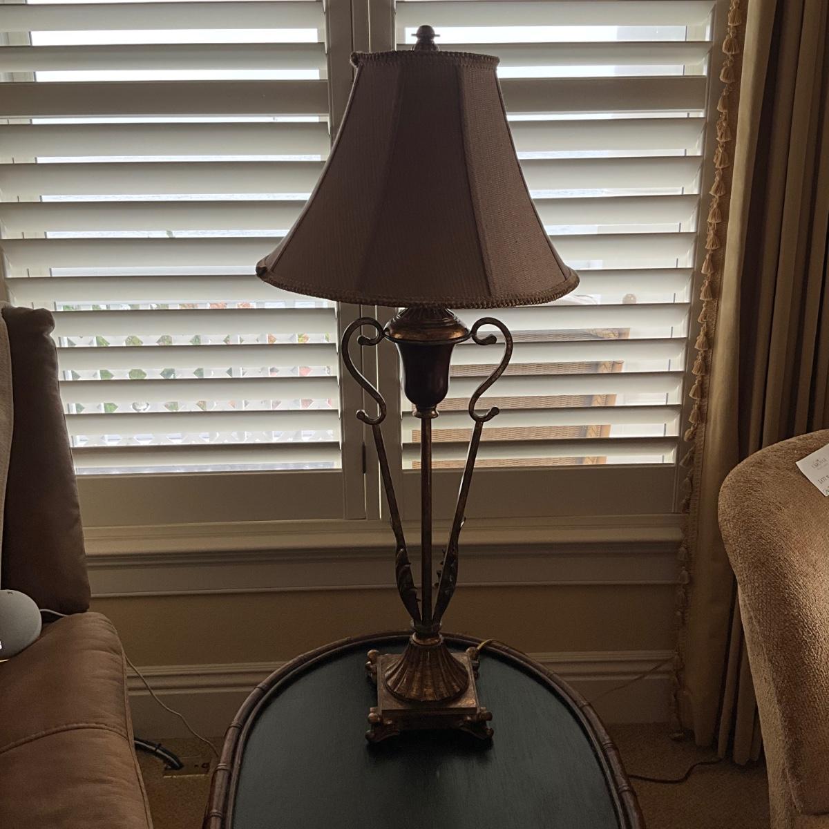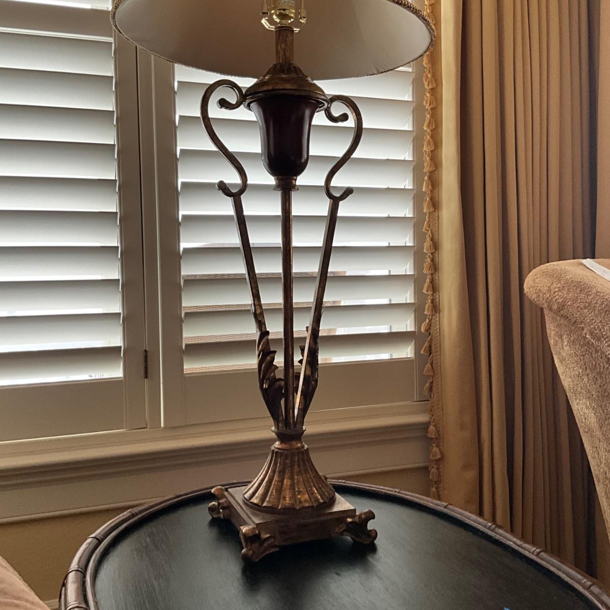 999 Tall Metal Neoclassical Gold and Burgundy Lamp by Excelsior
