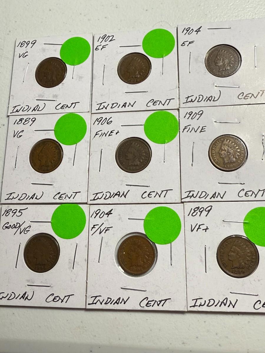 9-NICE CIRCULATED CONDITION INDIAN HEAD CENTS LOT AS PICTURED.