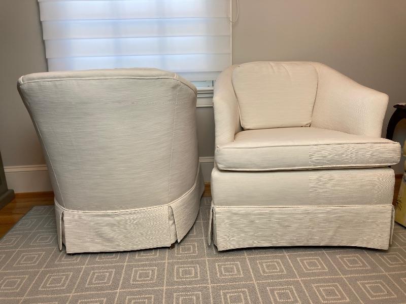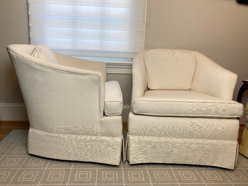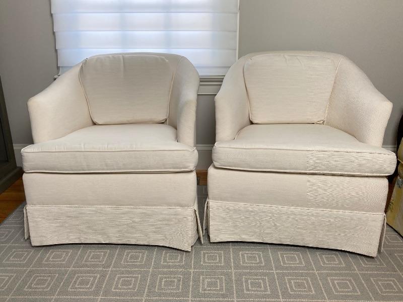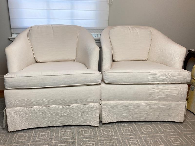 Pair of White Upholstered Club Chairs