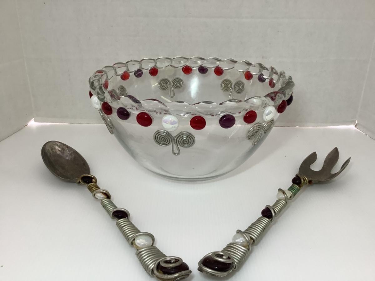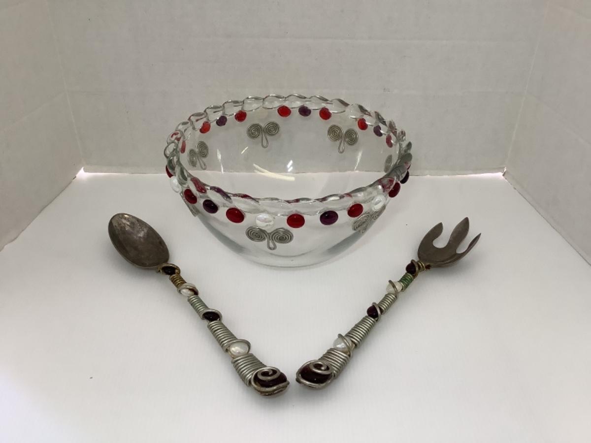 Large Decorative Serving Bowl & Utensils