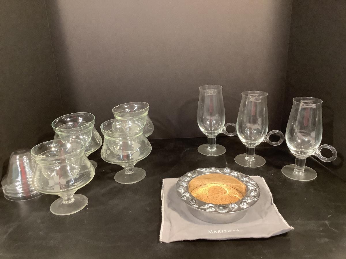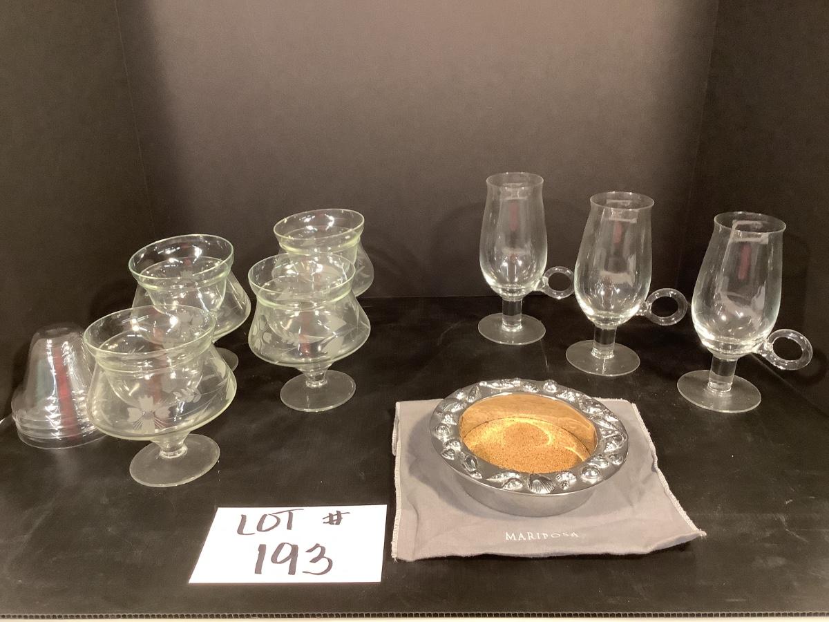 A - 193 Mariposa Wine Coaster/Etched Glass Shrimp Cocktail/Crystal Irish Cream Mugs