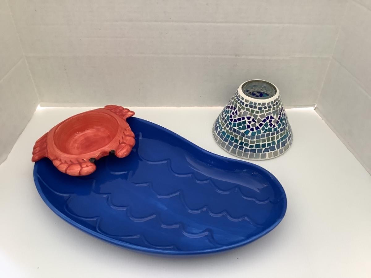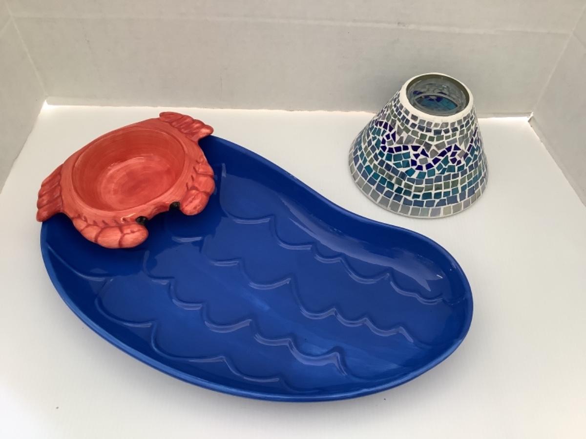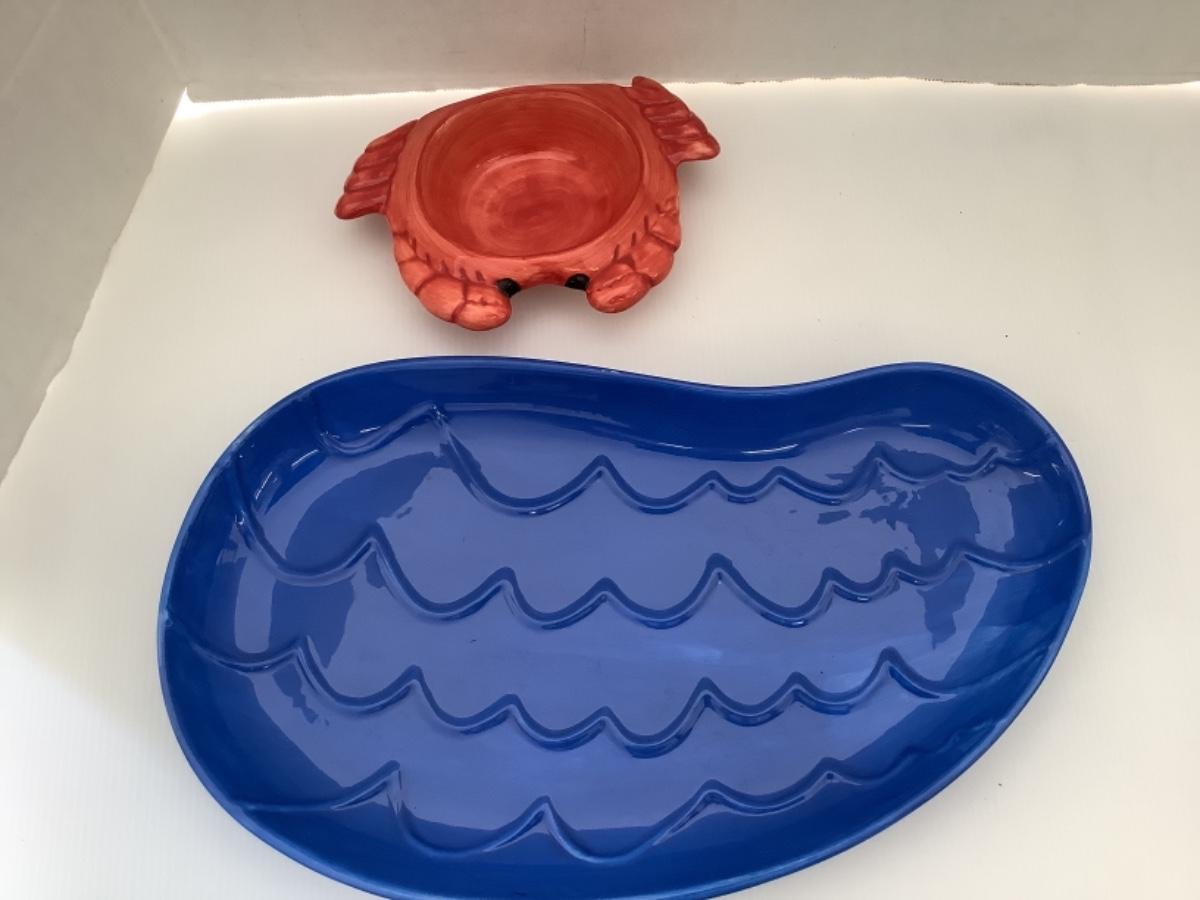 A - 194 Crab/Water Serving Platter & Bowl Set  / Blues Mosaic Shade