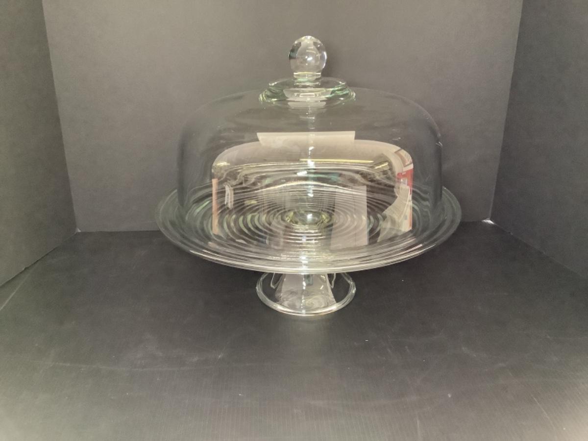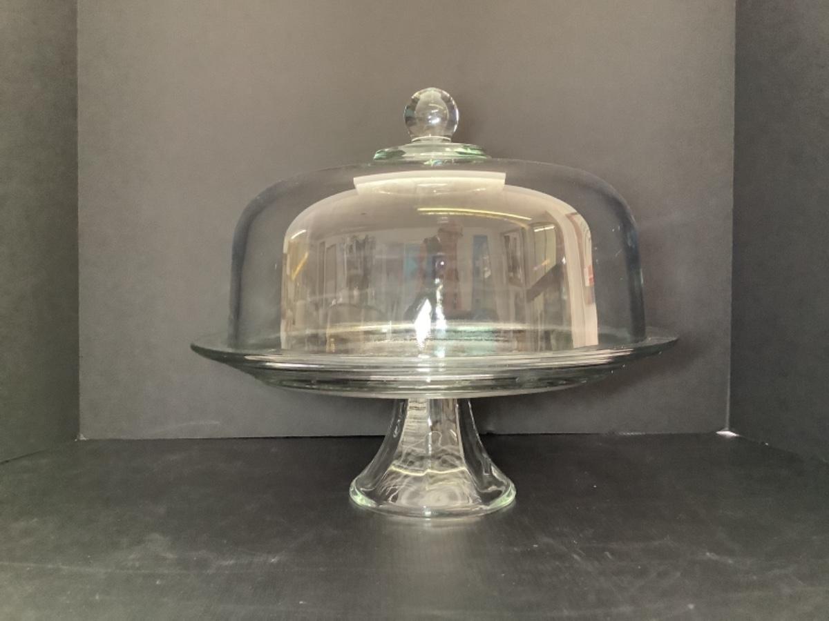 A - 199. Clear Glass Pedestal Cake Stand with Dome Cover