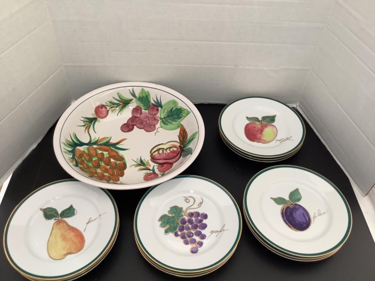 A - 207. Lot of Crate & Barrel Plates / 1 Large Fruit Serving Bowl