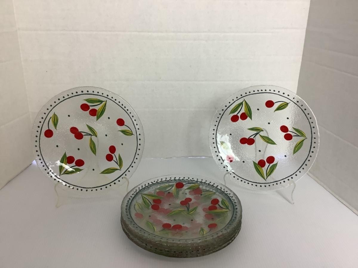 8 Vintage Arcaro France Textured Glass Cherry Pattern Plates - 8” Round