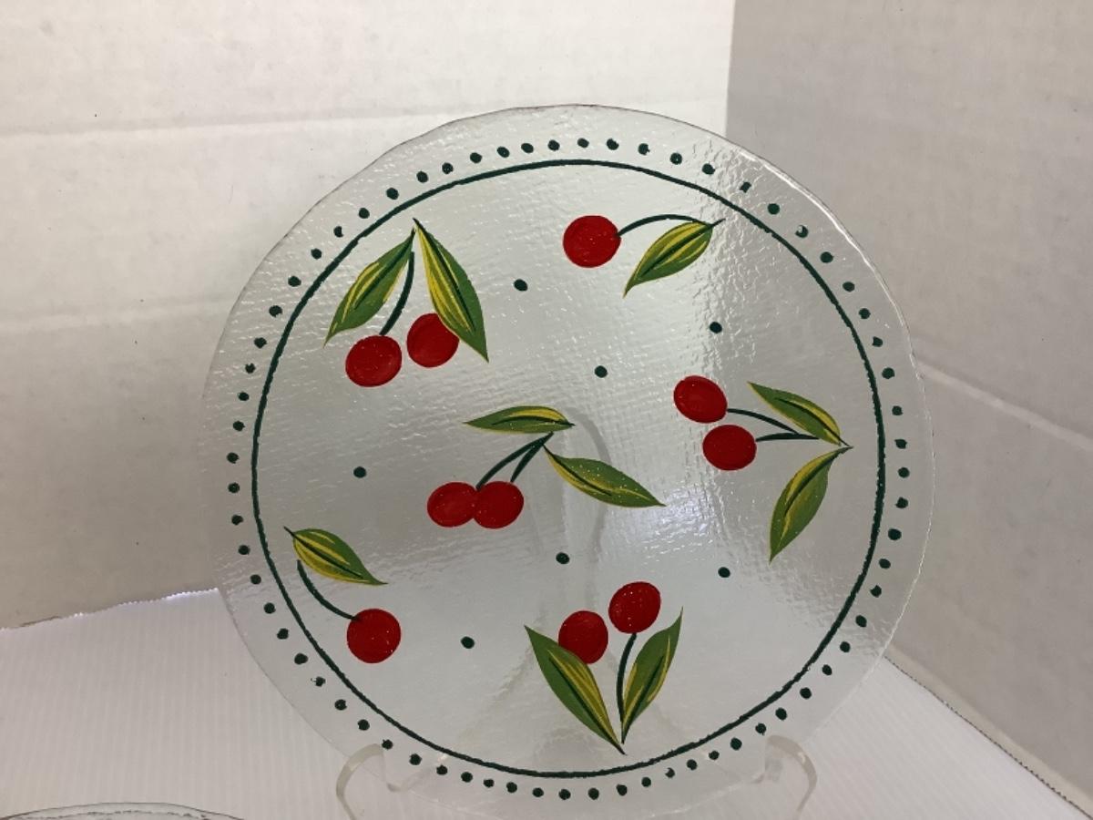 A - 208. Vintage Arcaro France Textured Glass Cherry Pattern Plates