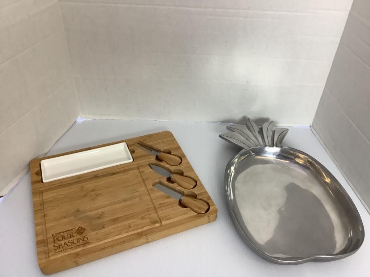 A - 212 Four Seasons Wooden Cheese Board/Knife Set & Pewtarex Pineapple Shaped Serving Dish