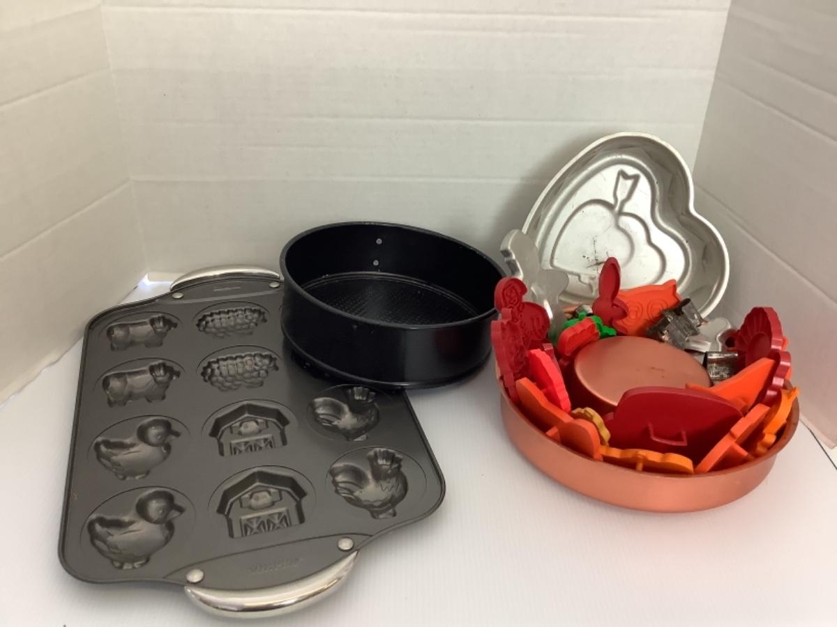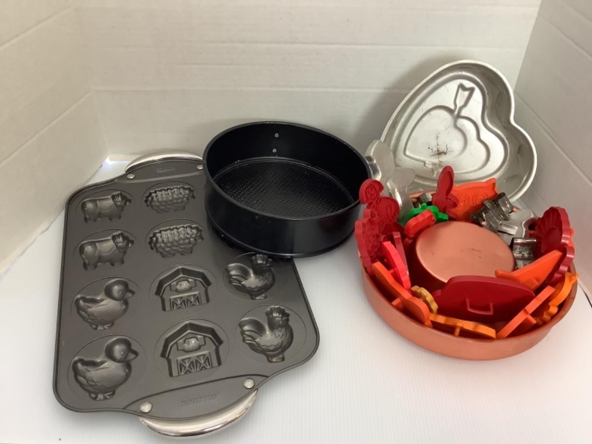 A - 217. Vintage Cookie Cutters / Cake Pans / Cookie Mold Tray