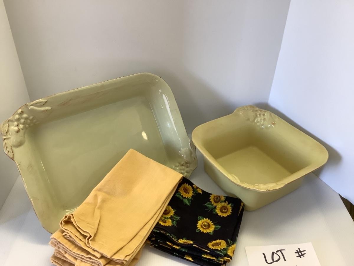 A - 221. Casa Stone Baking Dishes by Casafina & Cloth Napkins