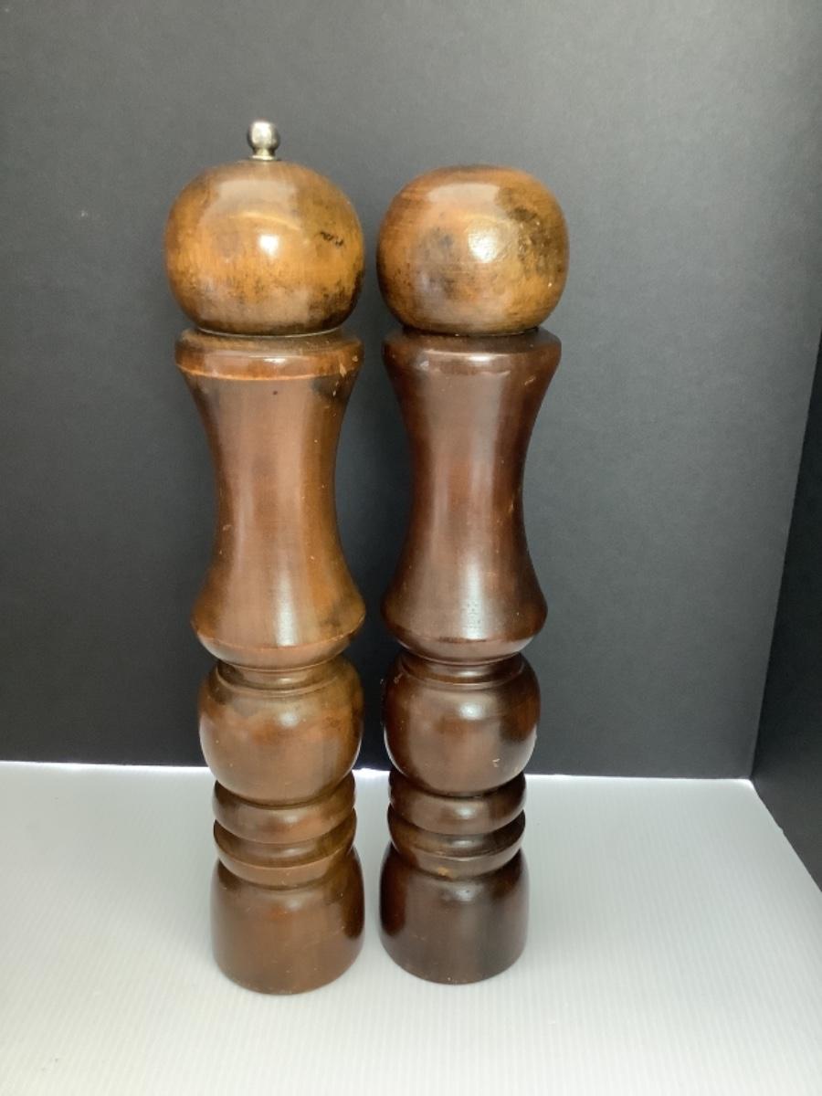 Large Vintage Wooden Salt & Pepper Mills - measures 13.5” Tall