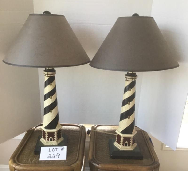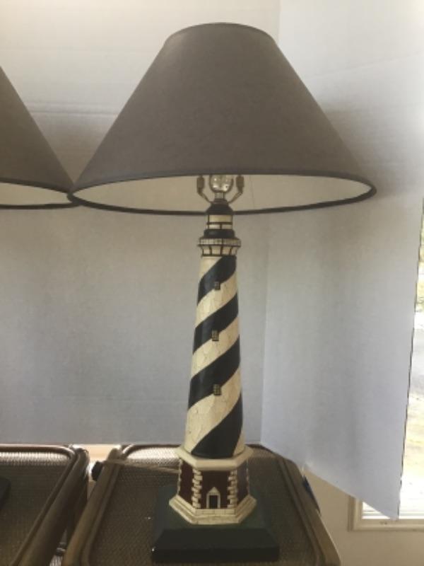 A Pair of Lighthouse Lamps, “ Built with Pride by Joyce “ -