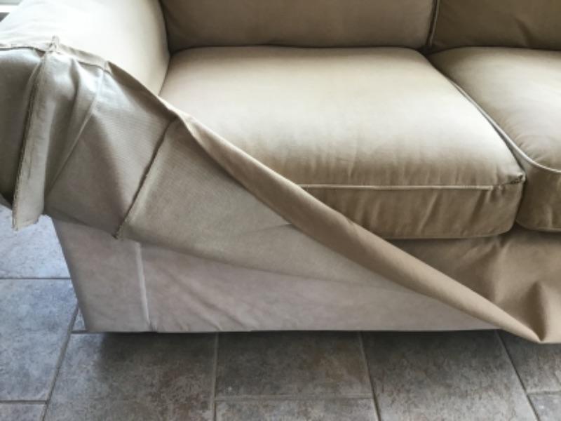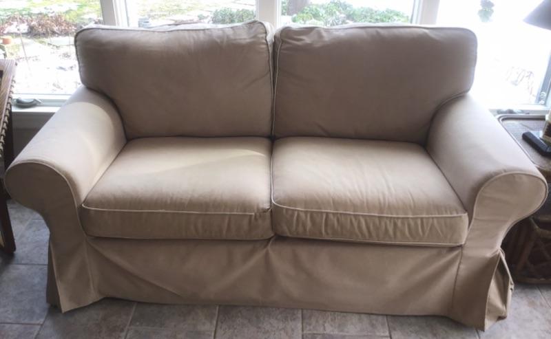 IKEA Loveseat ( cream colored originally ), has a tan colored slipcover, the back cushions are not attached,