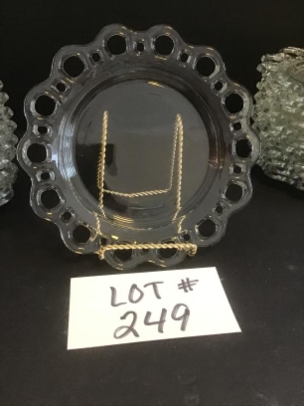 A - 249  Set of 24 Vintage Open Lace Edge Clear Glass Plates