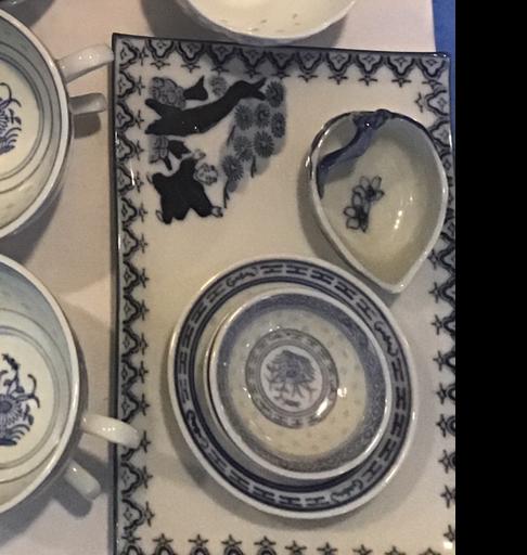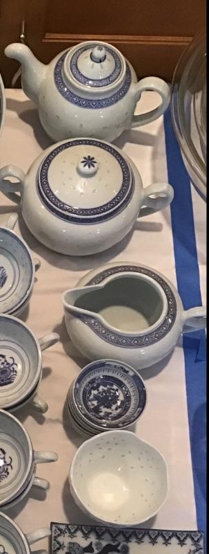 A - 252  Large Lot of Blue & White Rice Grain Porcelain China ( 110 pcs. )