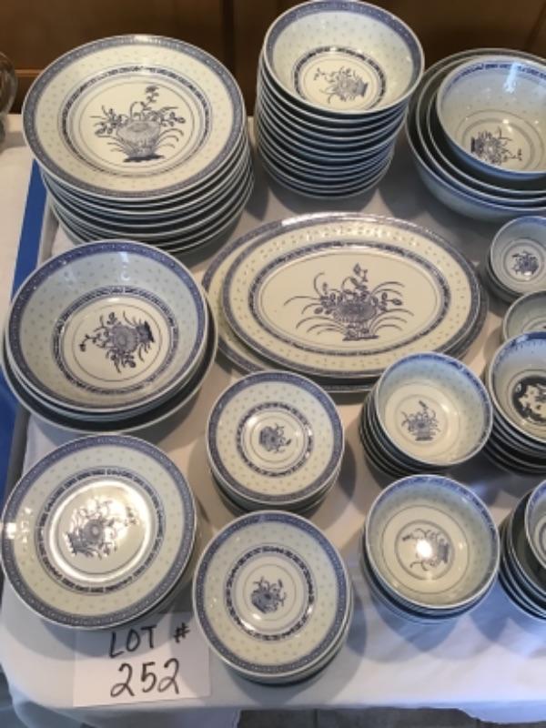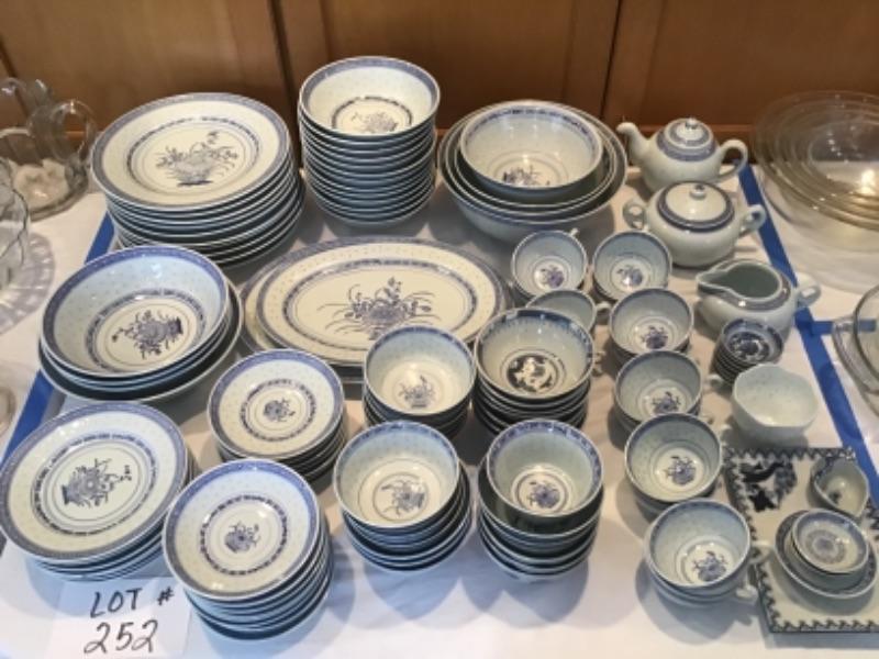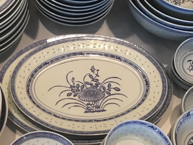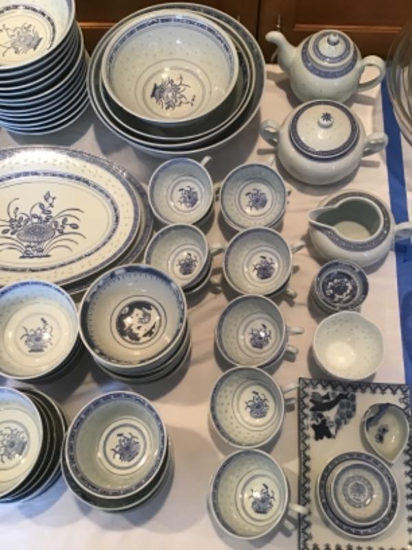 A - 252 Large Lot of Blue & White Rice Grain Porcelain China ( 110 pcs. )
