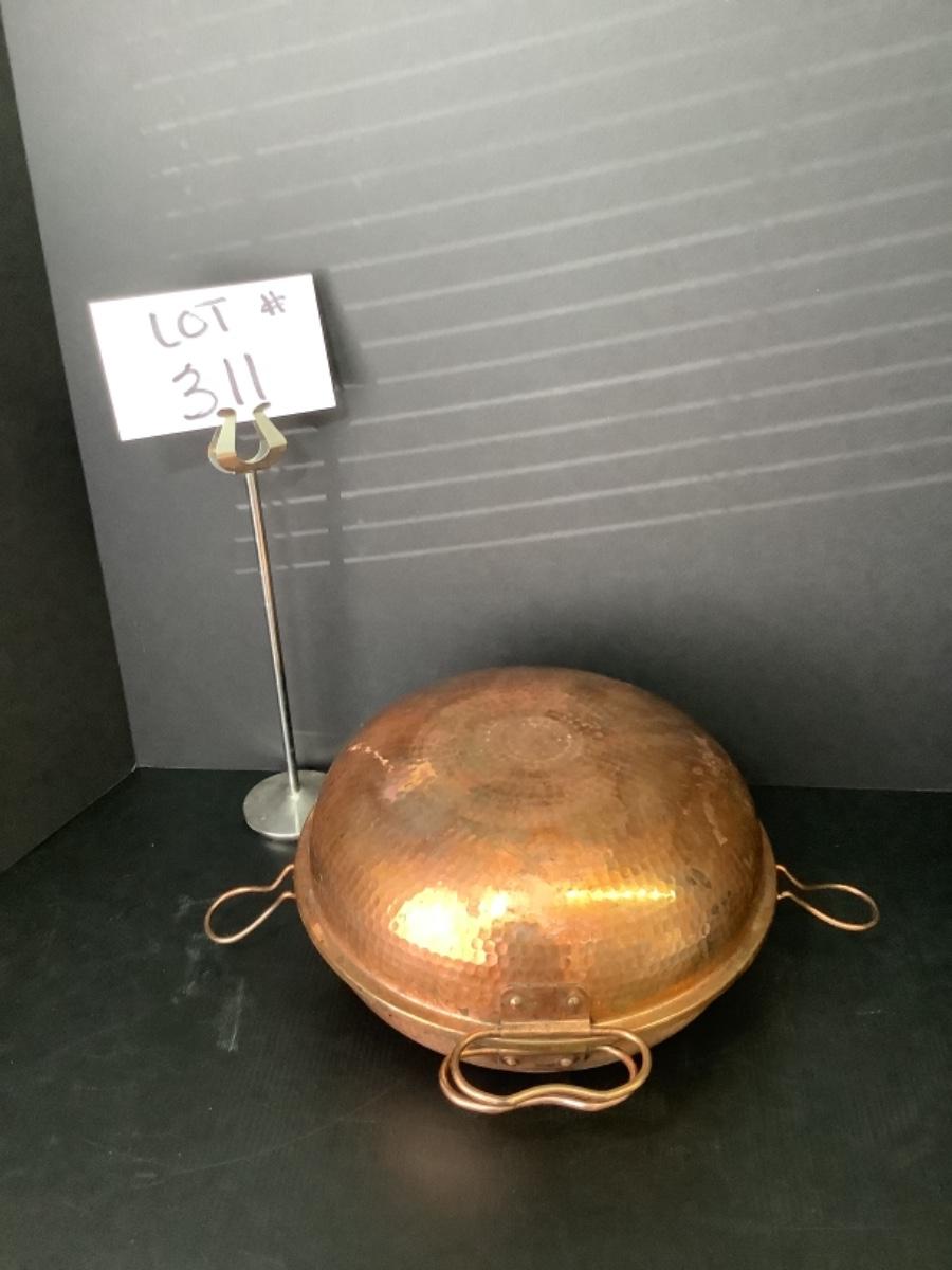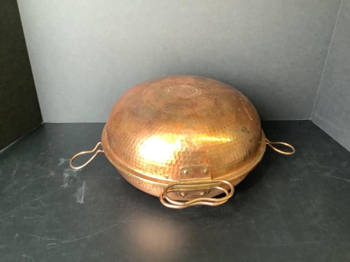 A - 311. Vintage Hammered Copper Portuguese Cataplana 10” Clam Shell Seafood Cooking Pot