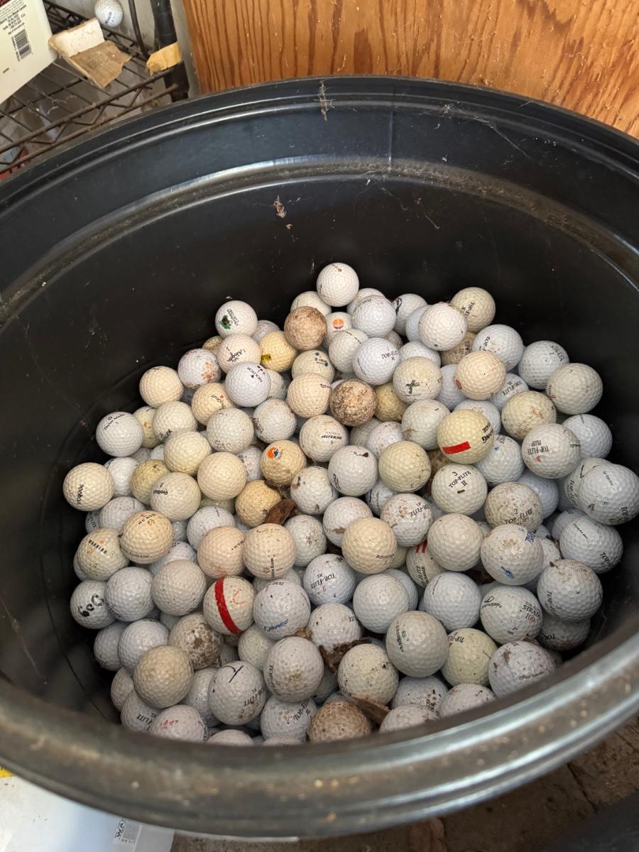 A 32 Gallon Can 3/4 full of used Golf Balls
