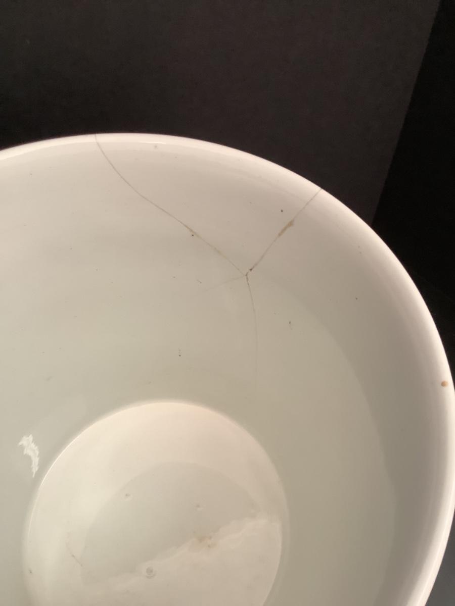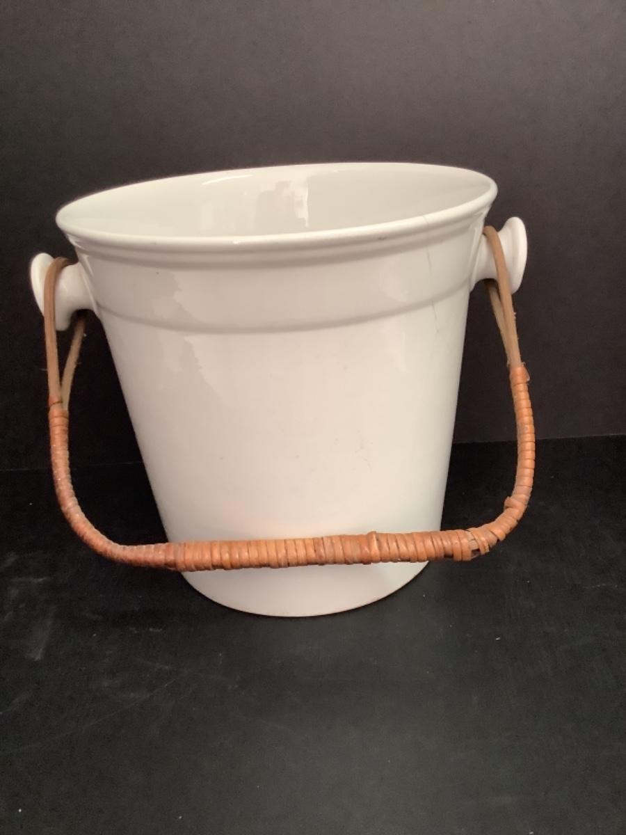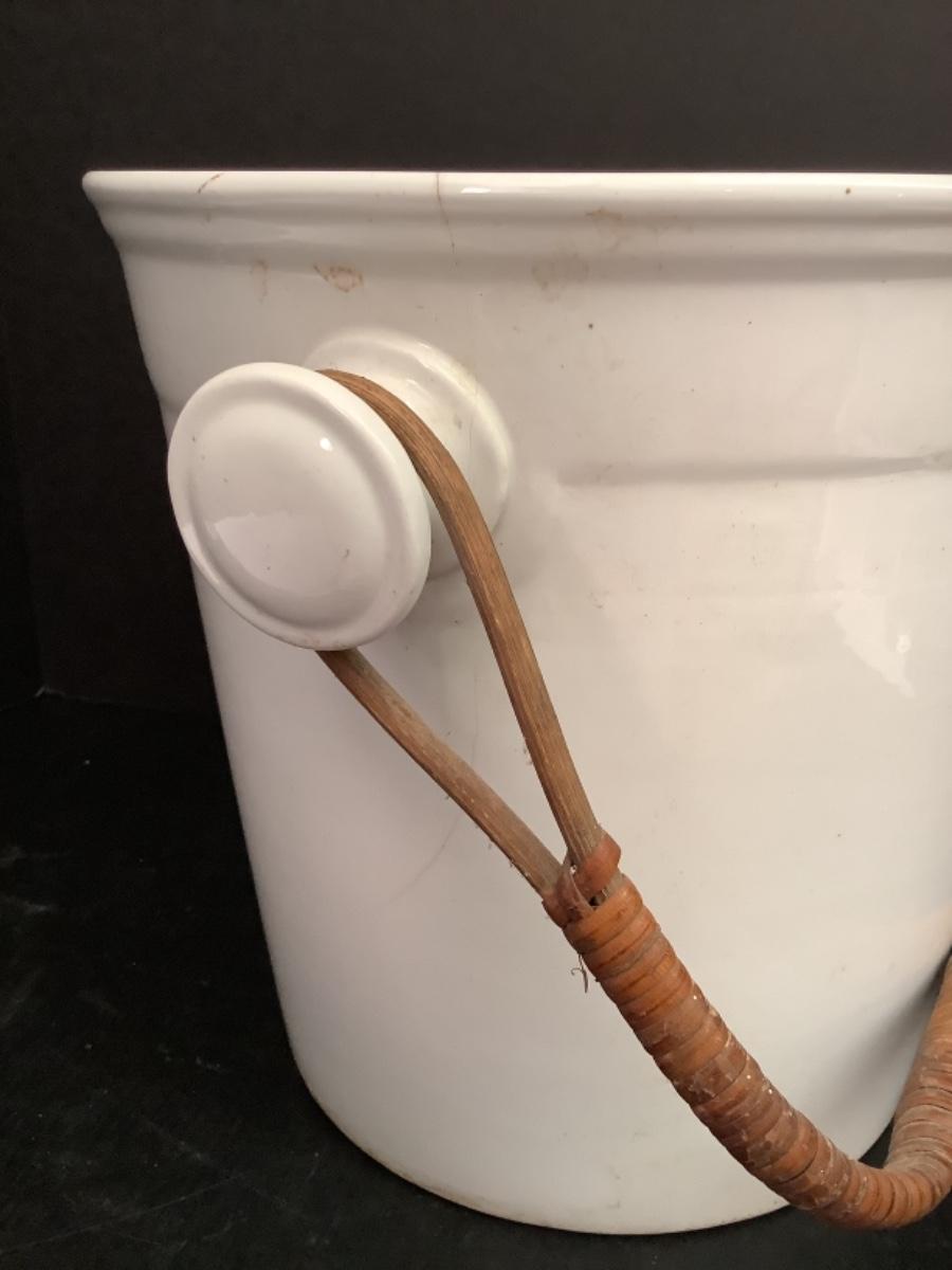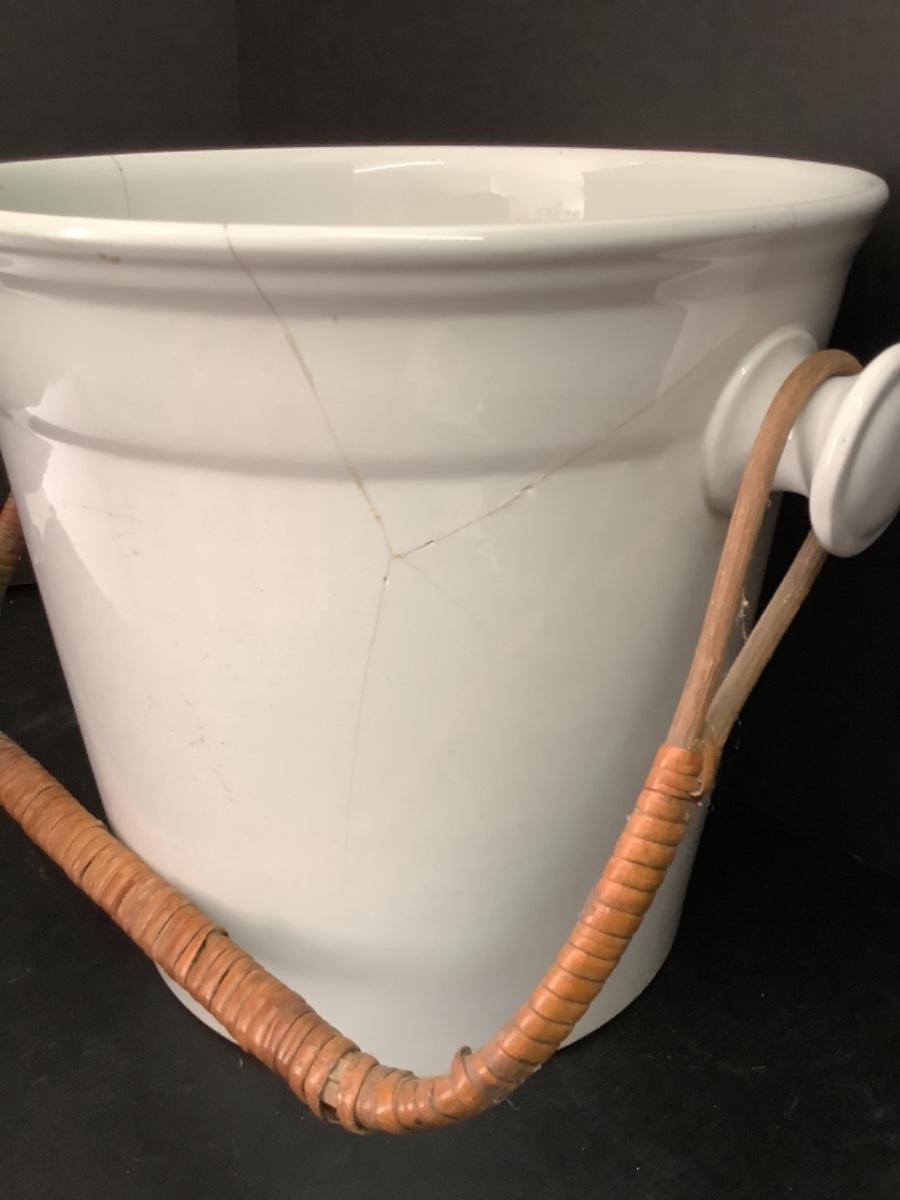 Large Antique Porcelain Bucket with Rattan Handle -