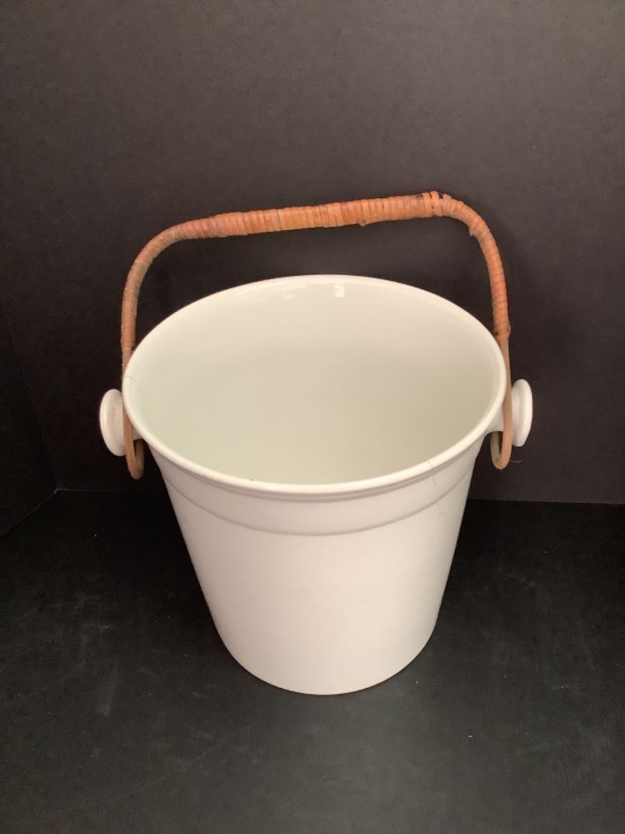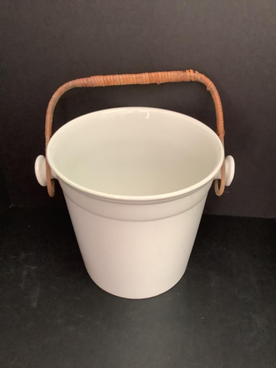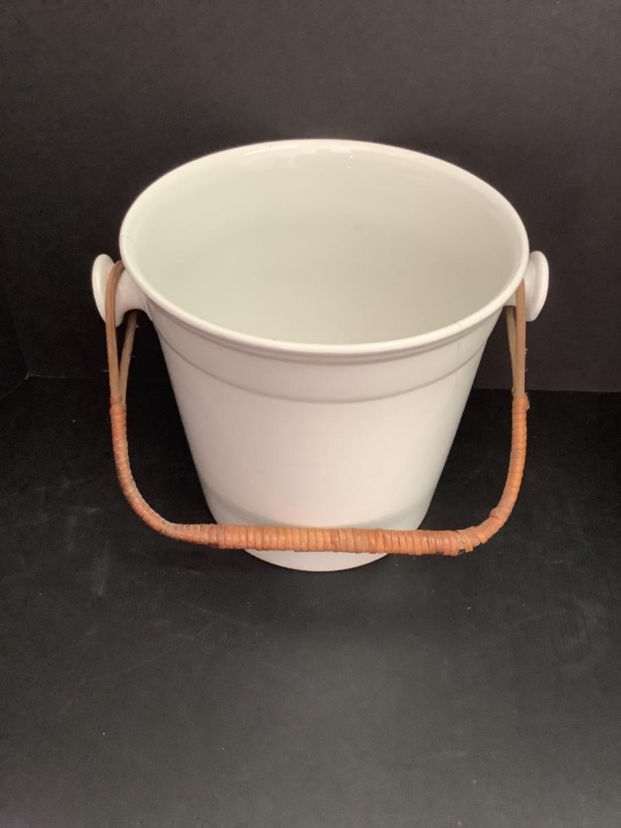 A - 320 Large Antique Porcelain Bucket with Rattan Handle