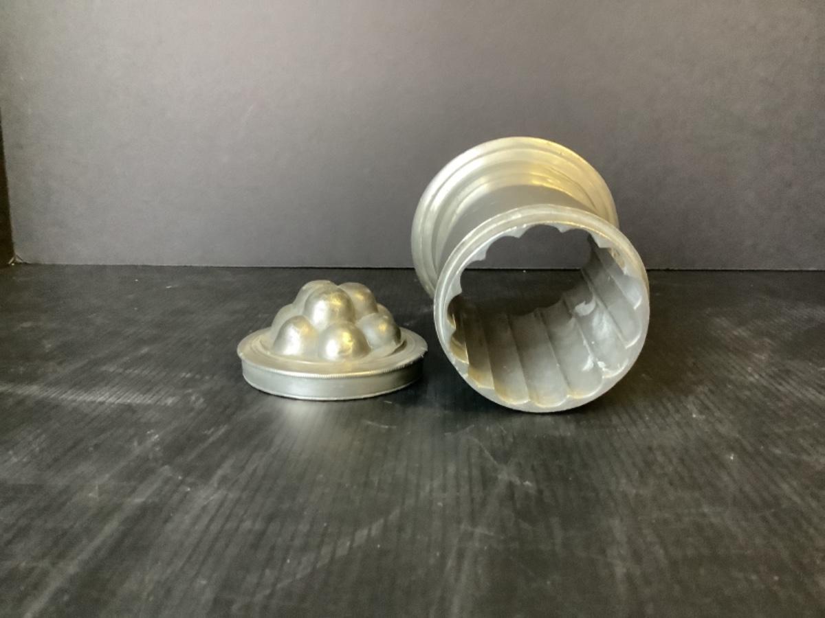 A - 330 Antique English Pewter 2pc Quart Ice Cream Mound Mold