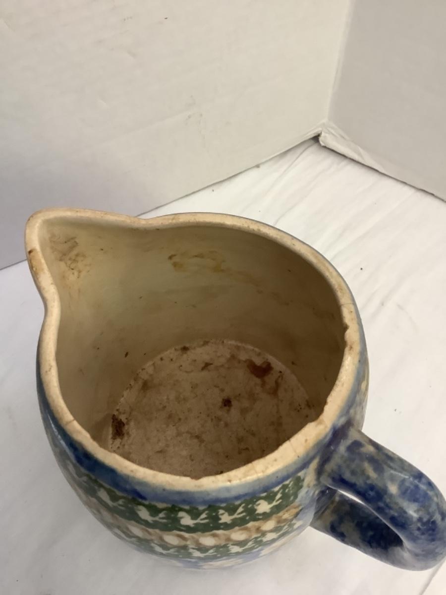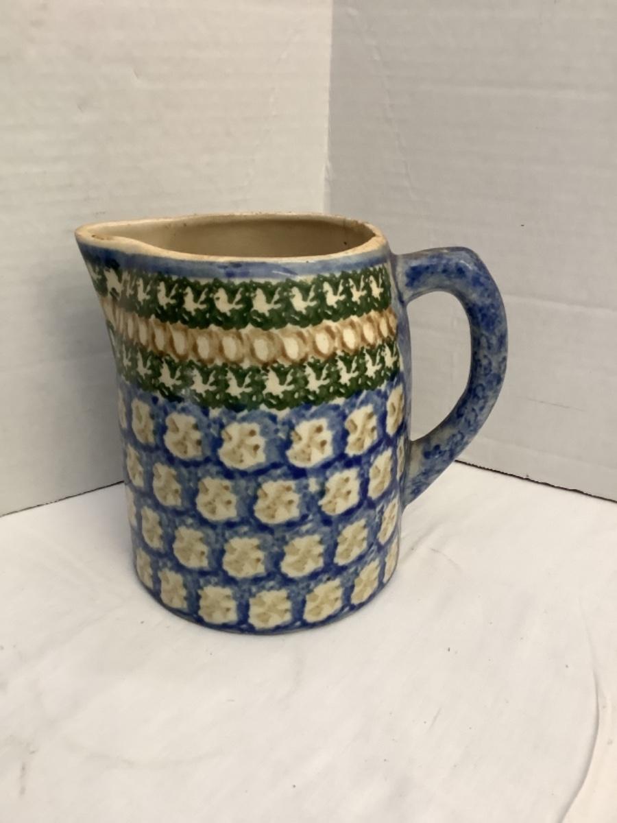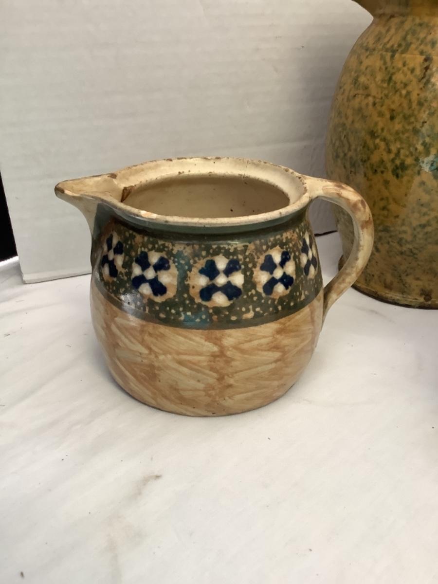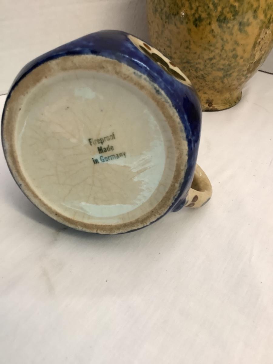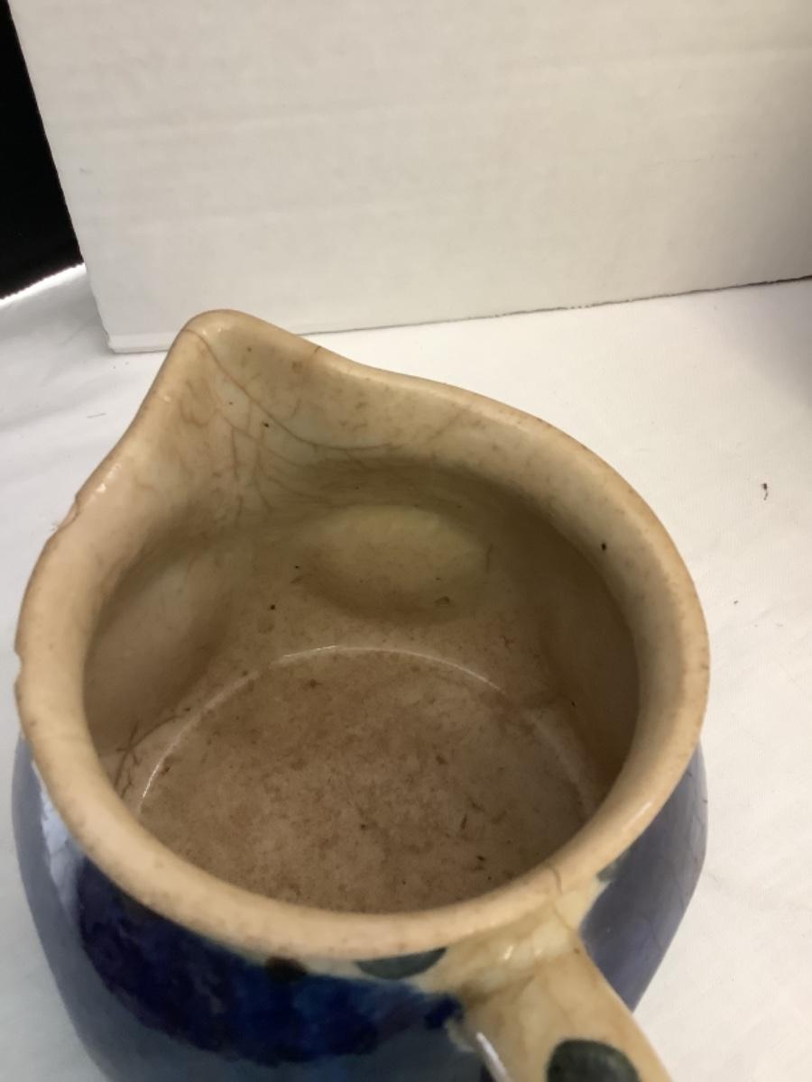1 ) 3.5” High ( Antique German Fireproof Ceramic Pottery Pitcher, Pour Jug- Cobalt Blue Crackle Floral )