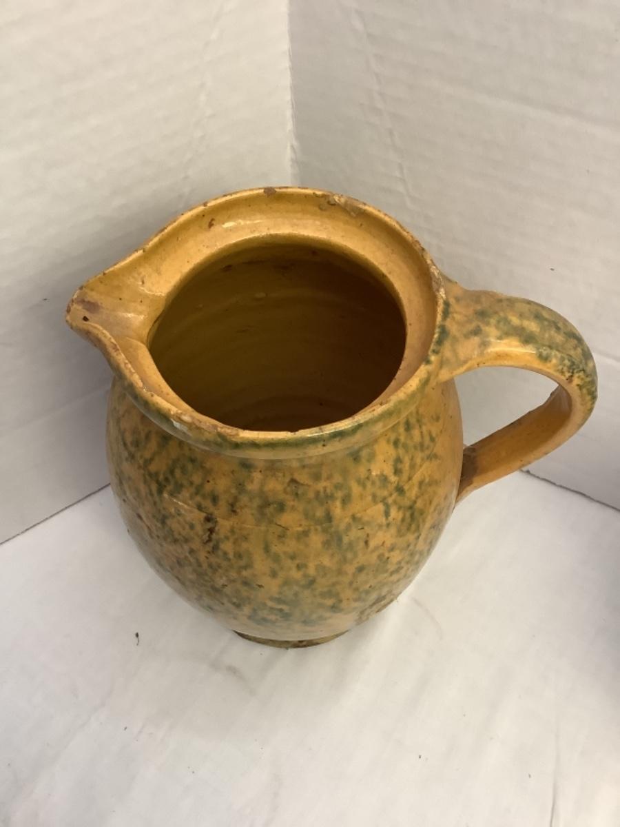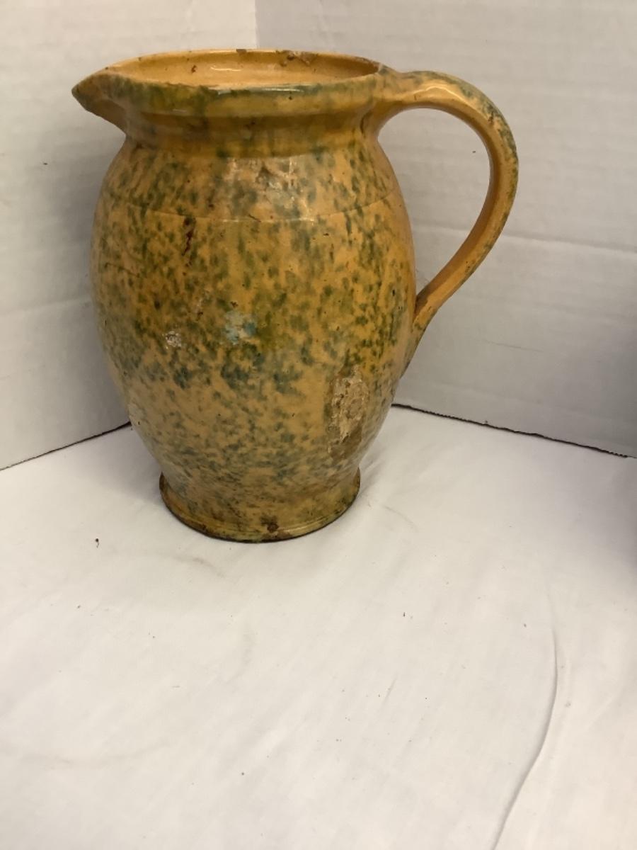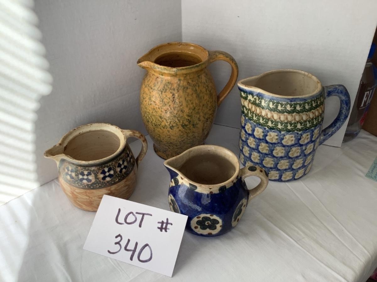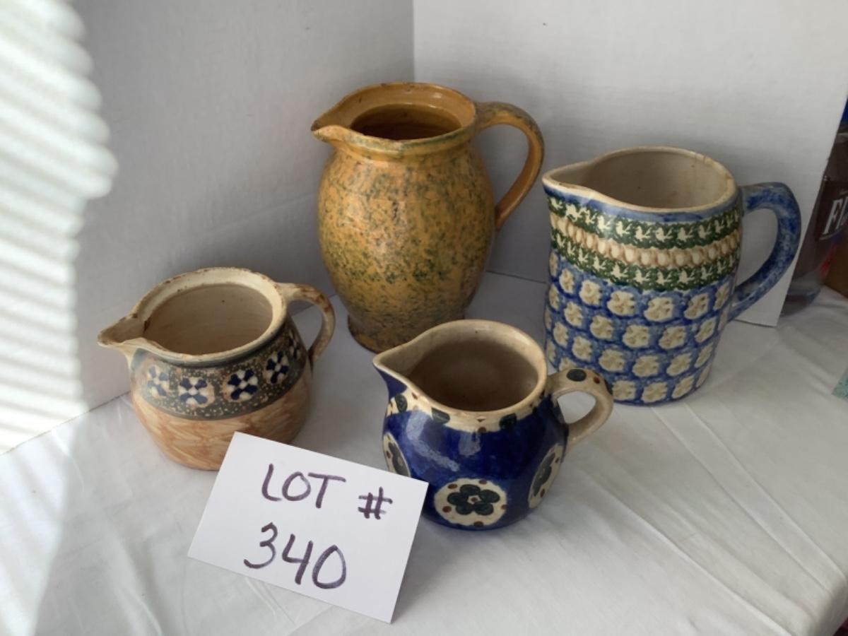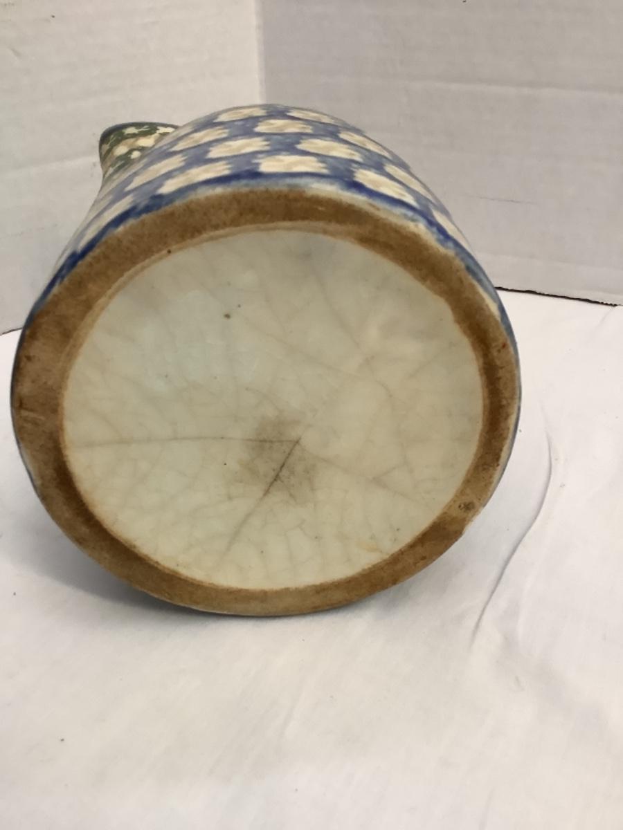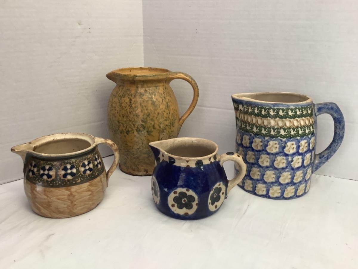 1 ) 3.5” High ( Antique German Fireproof Ceramic Pottery Pitcher, Pour Jug- Cobalt Blue Crackle Floral )
