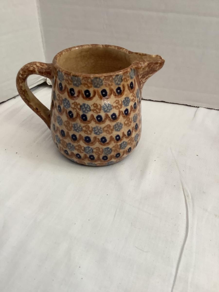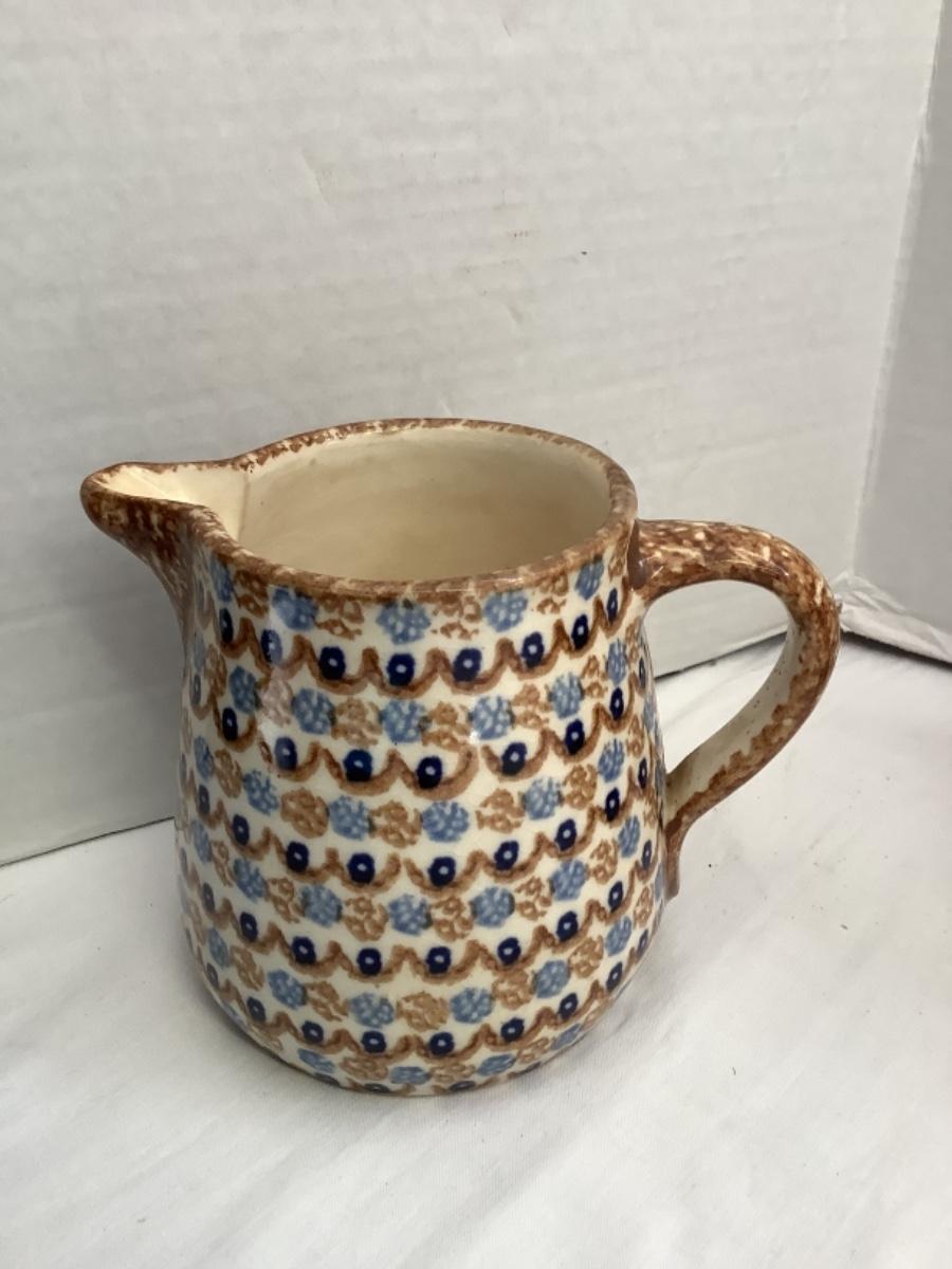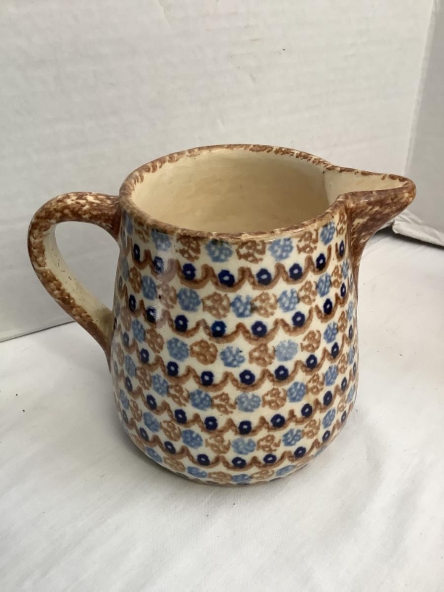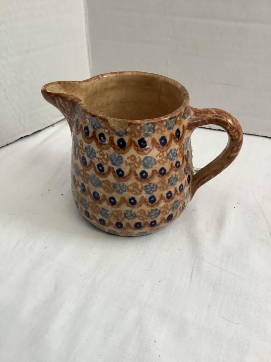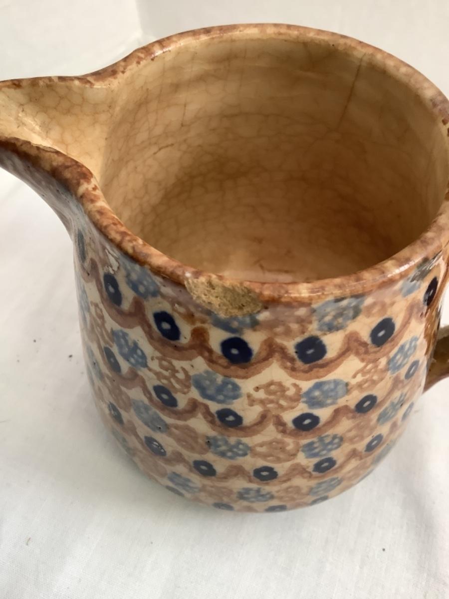 A - 342. Vintage German Sponge Ware Glaze, Blue/Brown