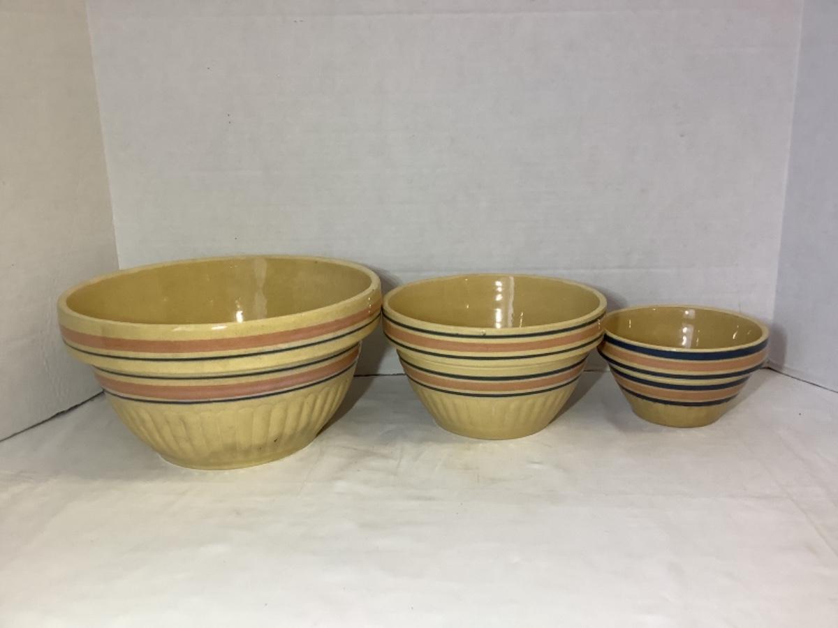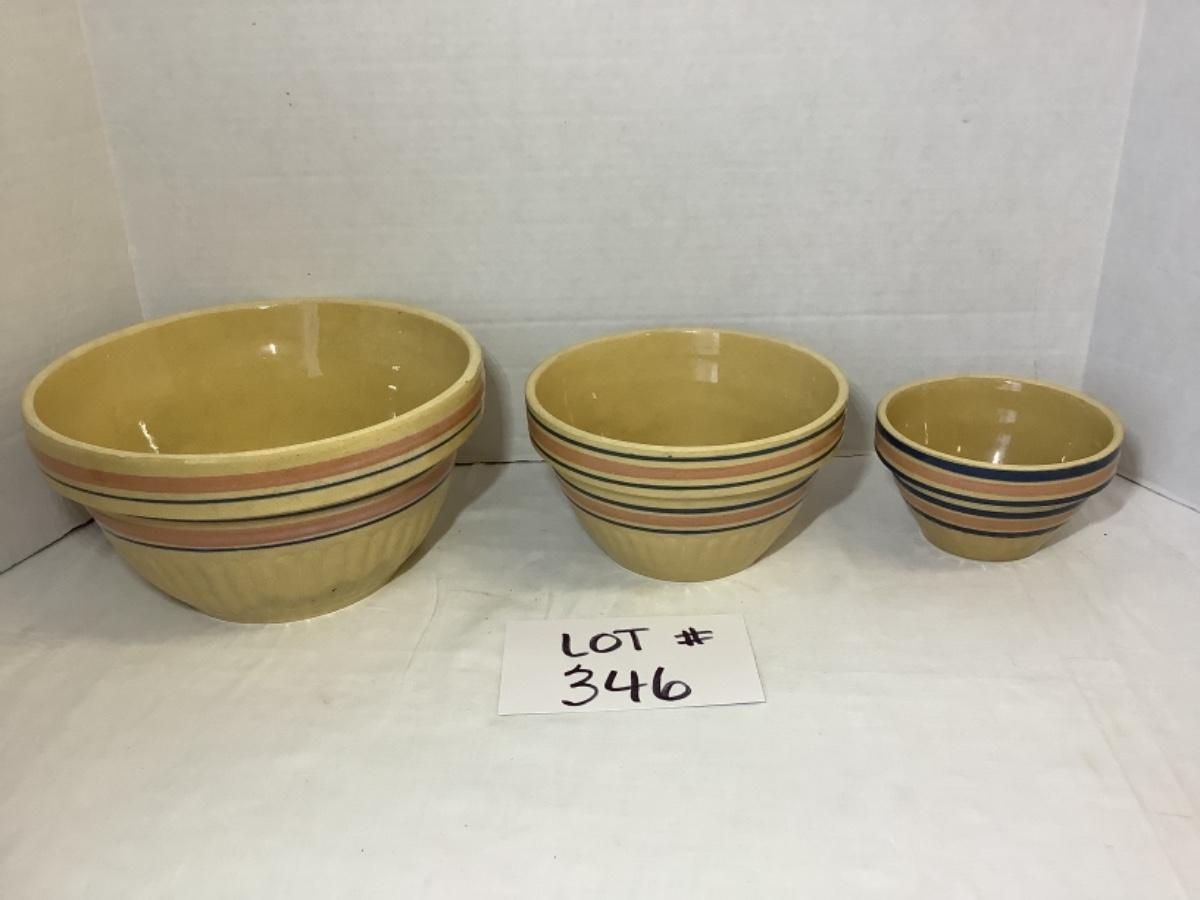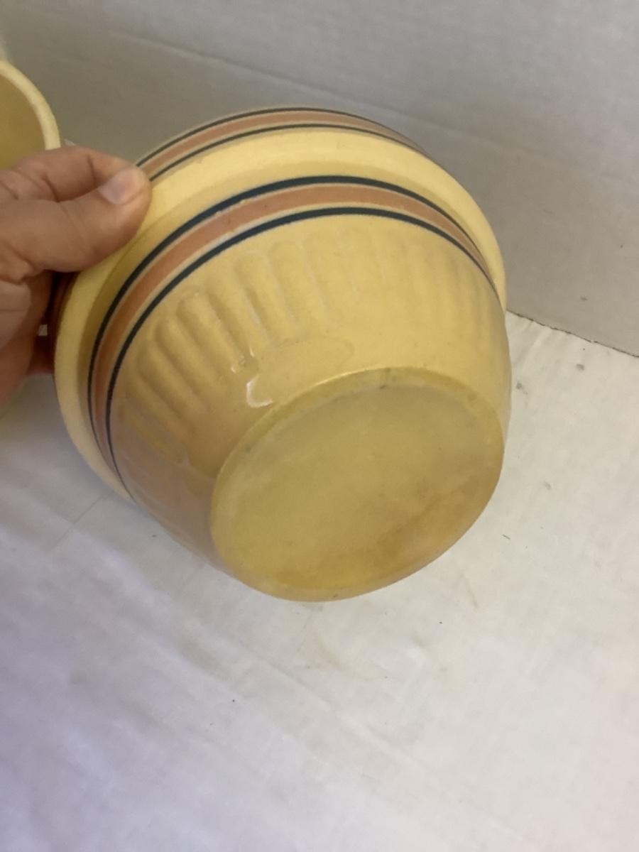A - 346. Antique Yellow Ware Stoneware Batter Mixing Bowls