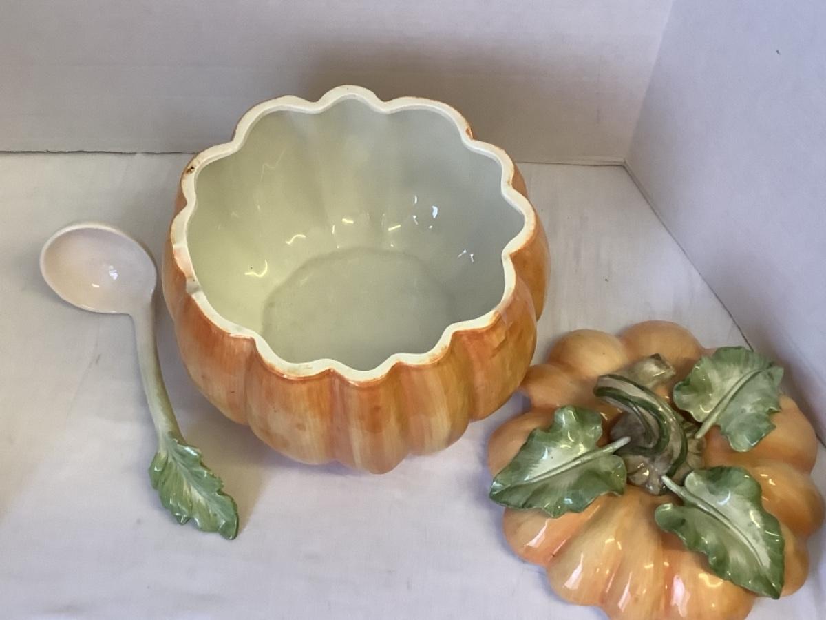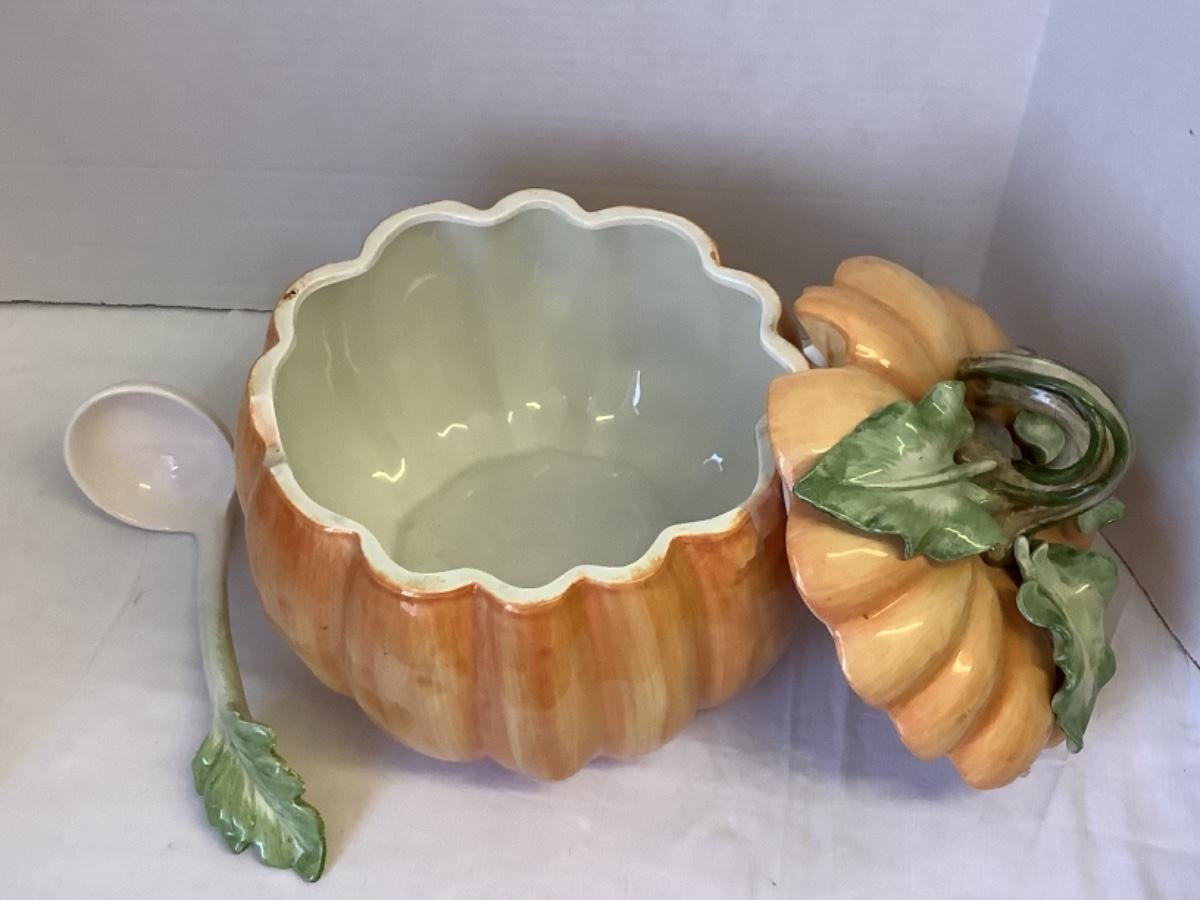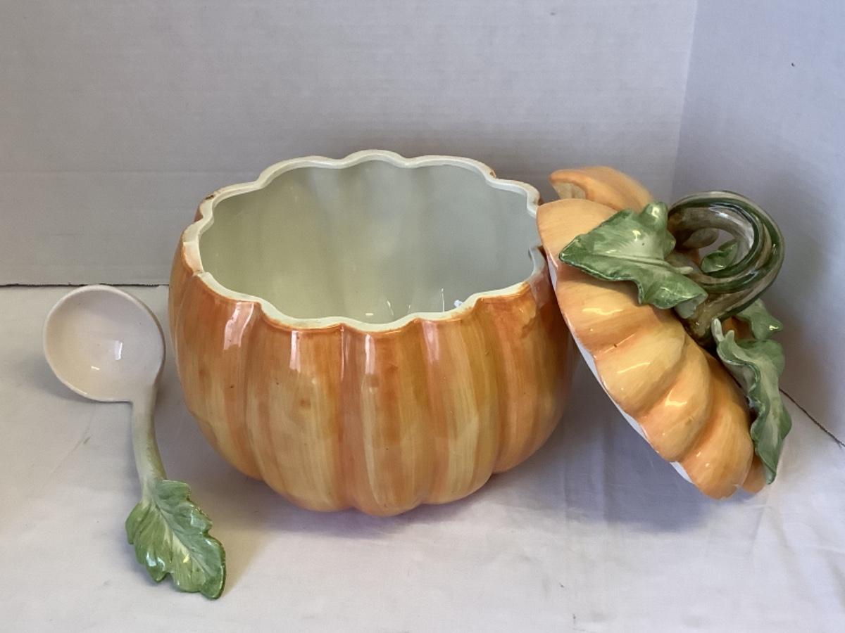 Fitz & Floyd Pumpkin Soup Tureen with Lid/Ladle 5 Qt.,