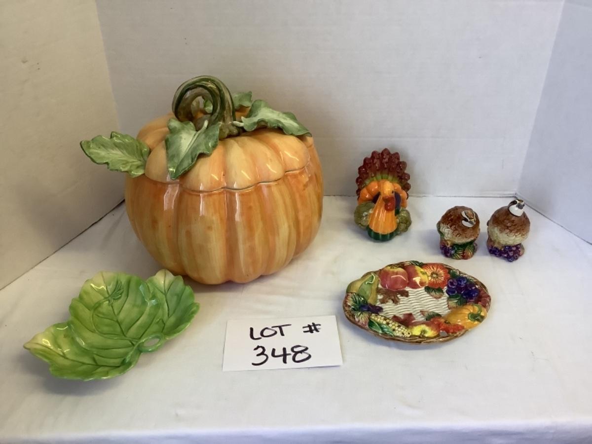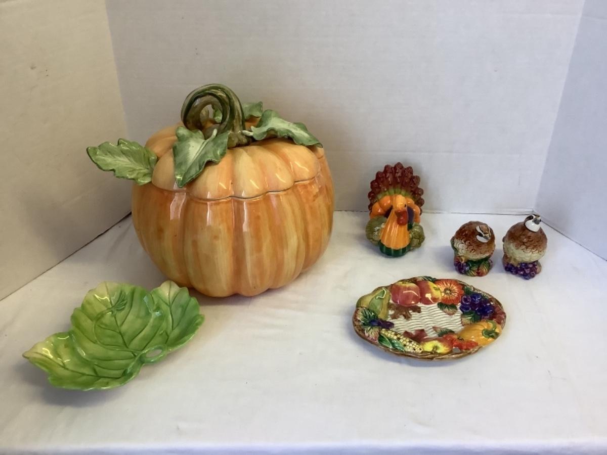 A  - 348 Fitz & Floyd Pumpkin Soup Tureen with Lid/Ladle, Fitz & Floyd Decorative Dishes, Dept. 56 Shakers