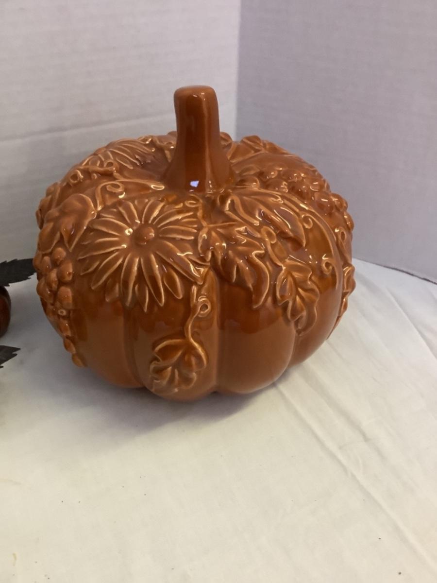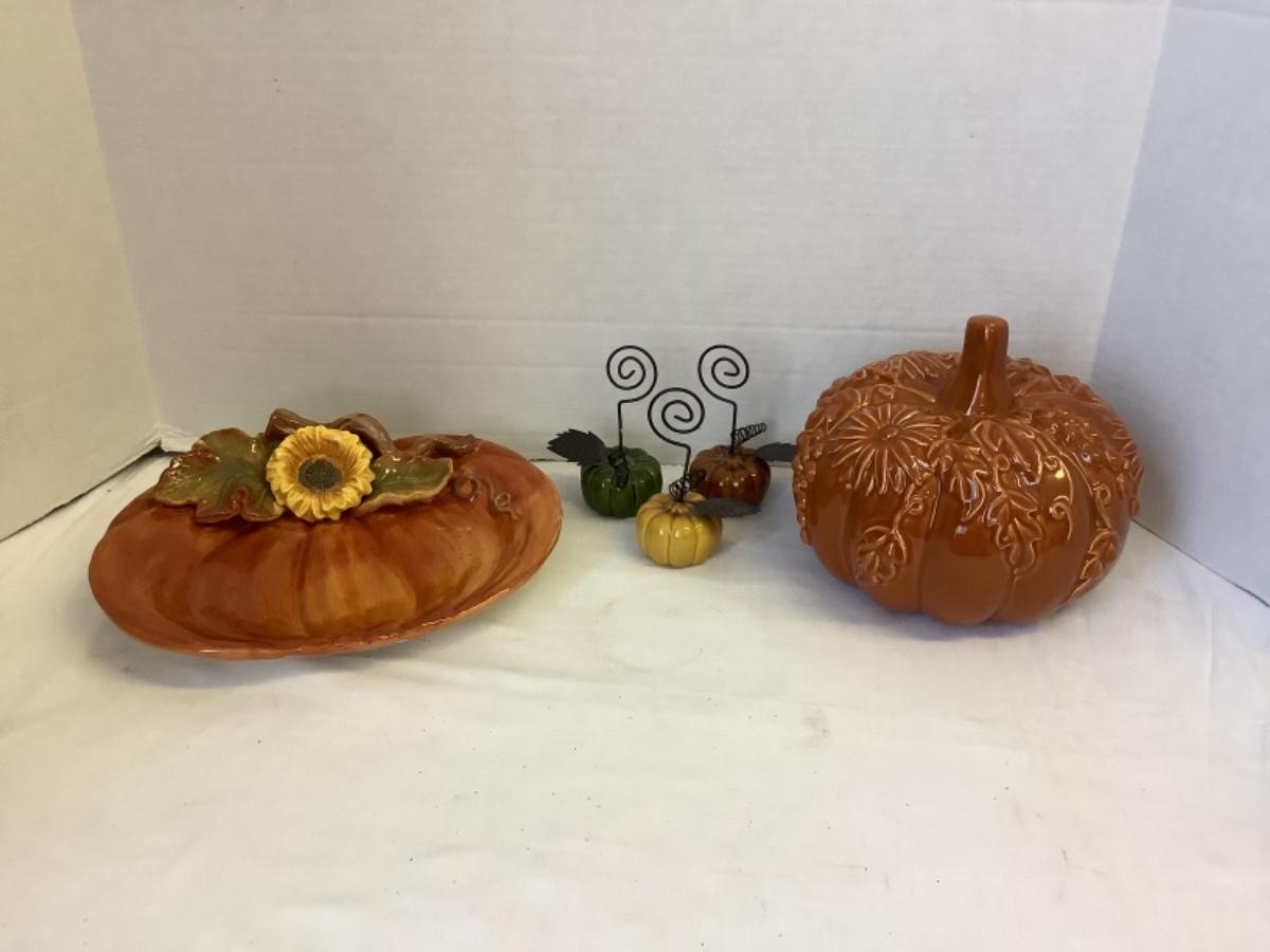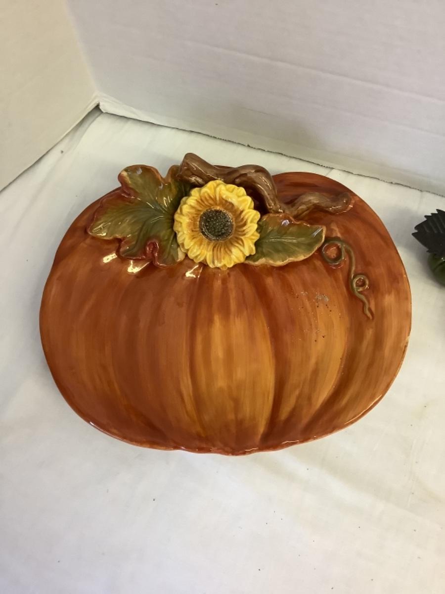 1 ) Ceramic Pumpkin Shaped Dish - measures 10” Wide x 8.5” Deep