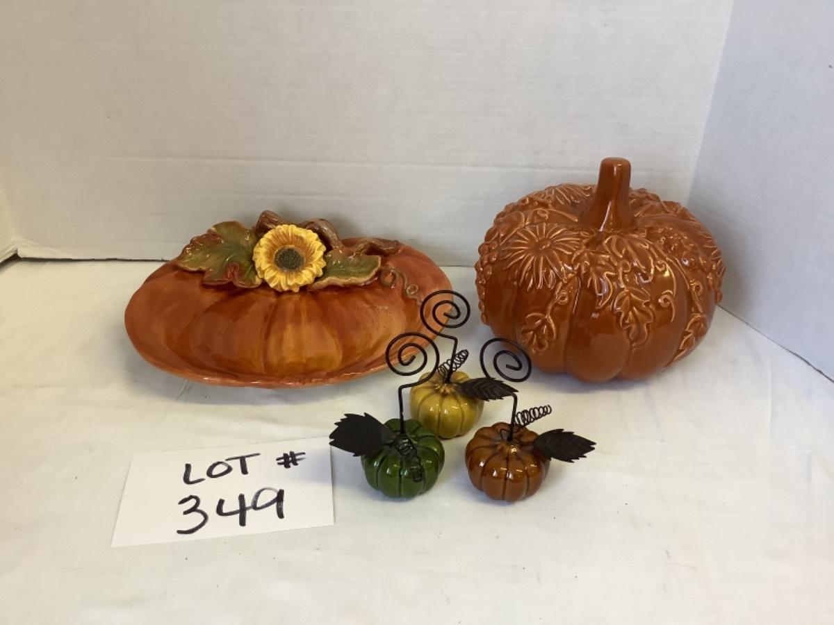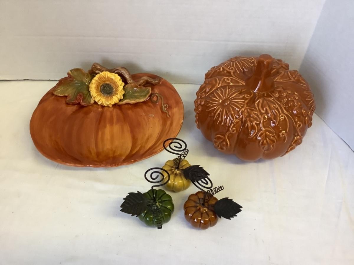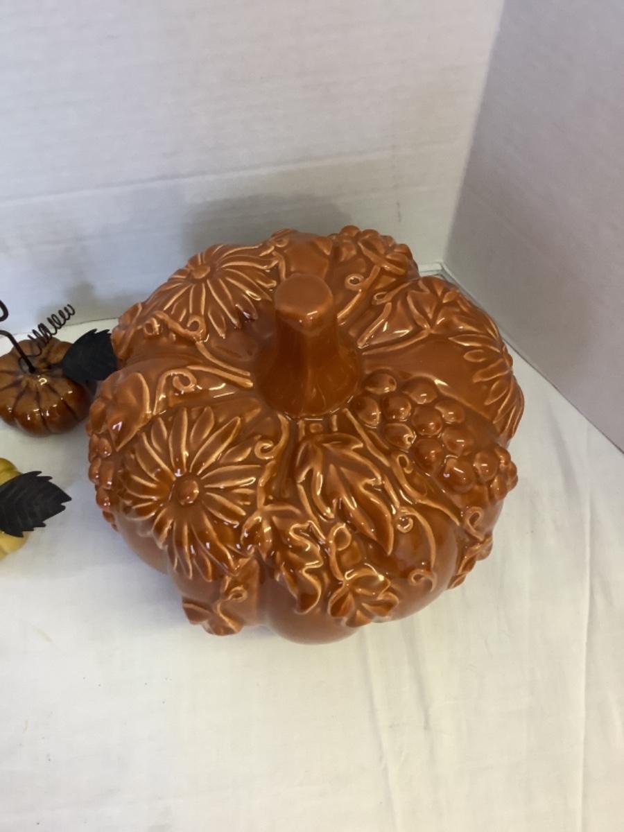 1 ) Ceramic Pumpkin Shaped Dish - measures 10” Wide x 8.5” Deep
