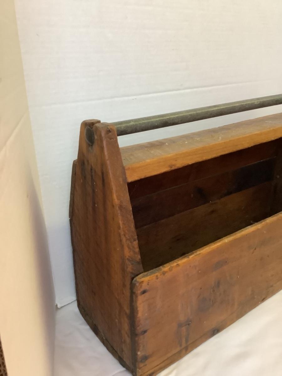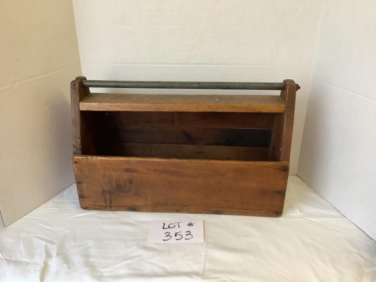 A - 353 Antique Wooden Tool Box with Metal Handle