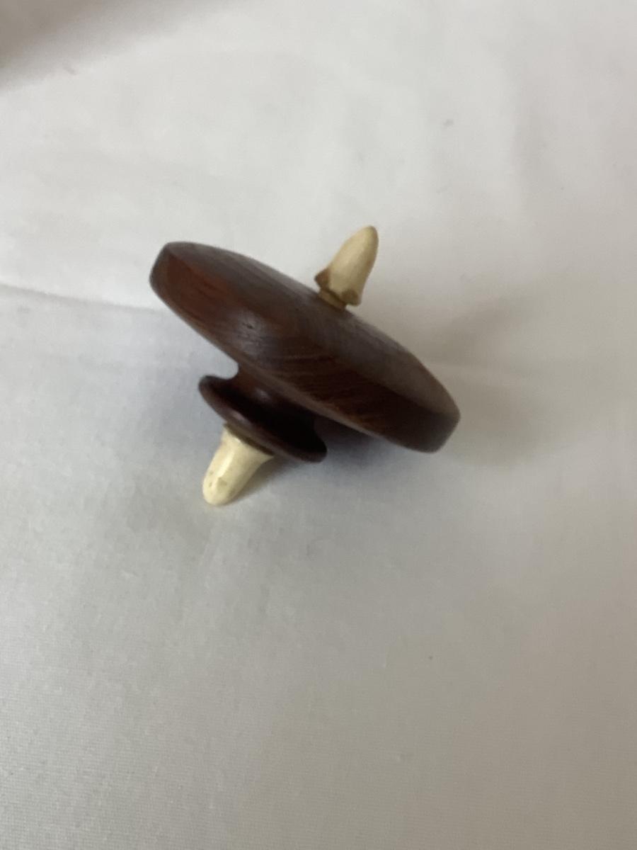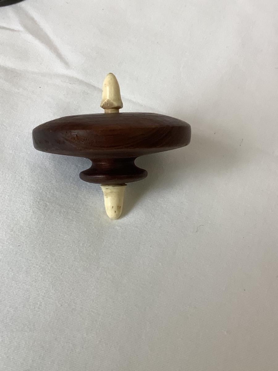 A - 361  Antique Tin Bank, Vintage Wooden Top, Vintage Bronze Colored Star Cast Metal Puzzle game