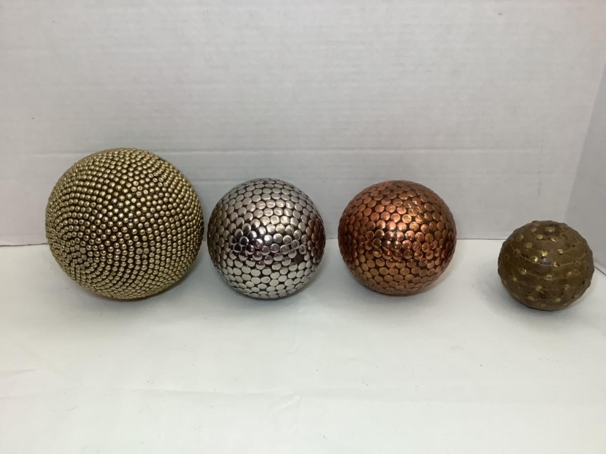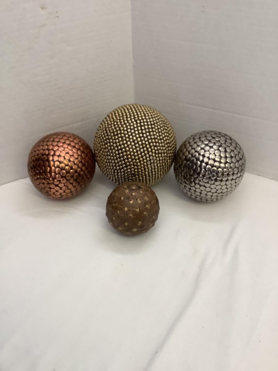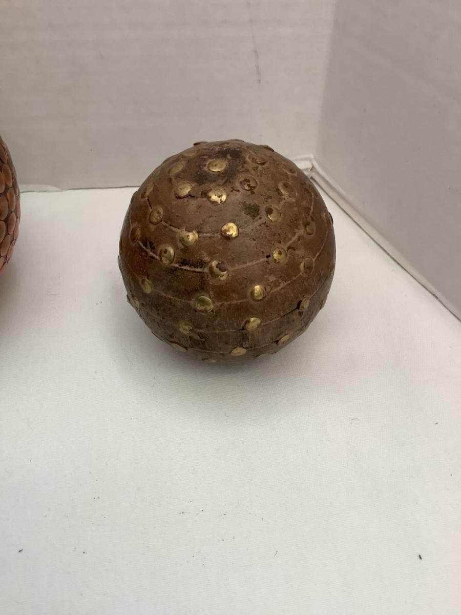A - 366 One Vintage Brass Fitted Wooden Ball &  Three Textures Decorative Spheres