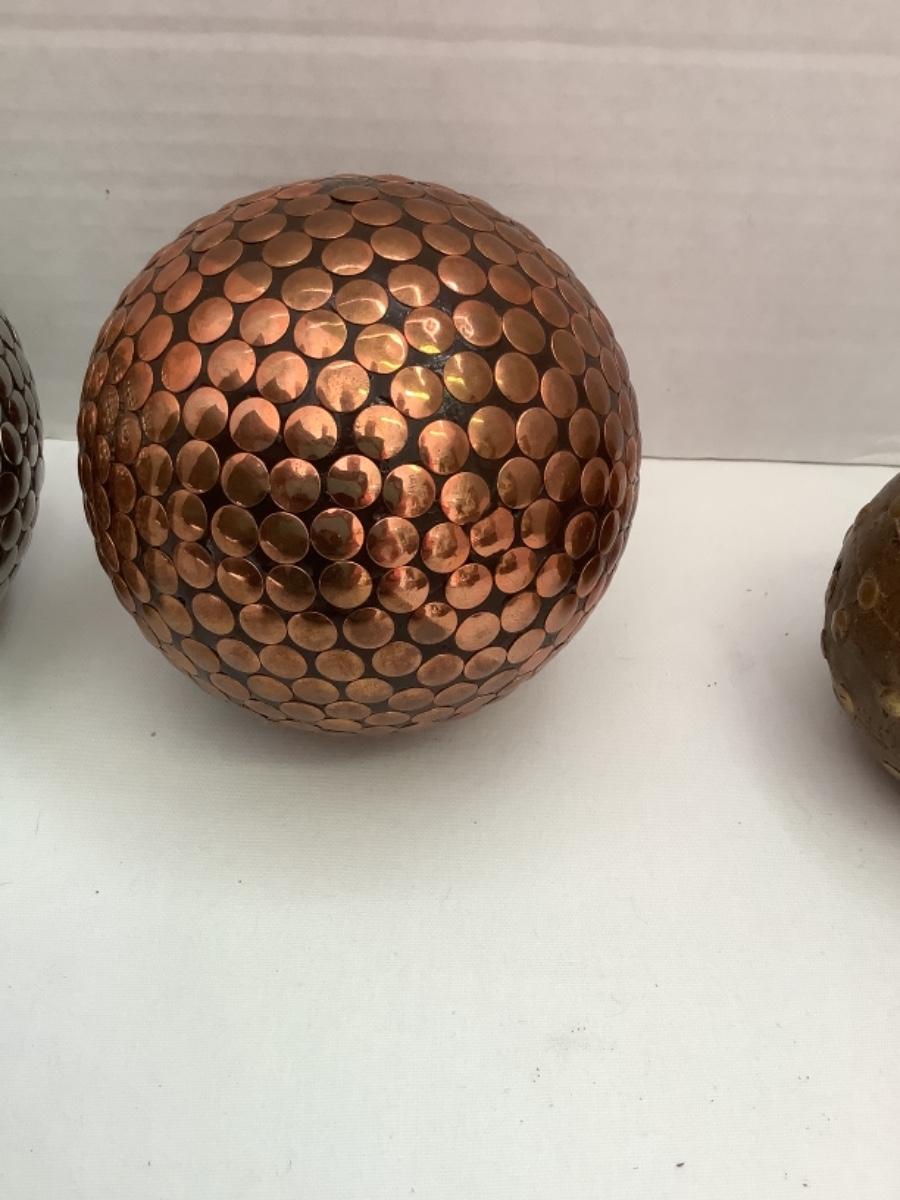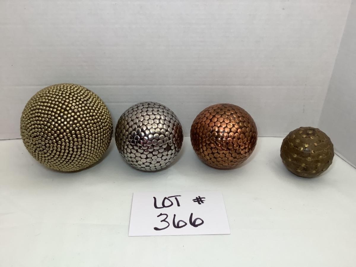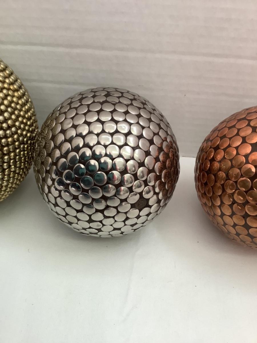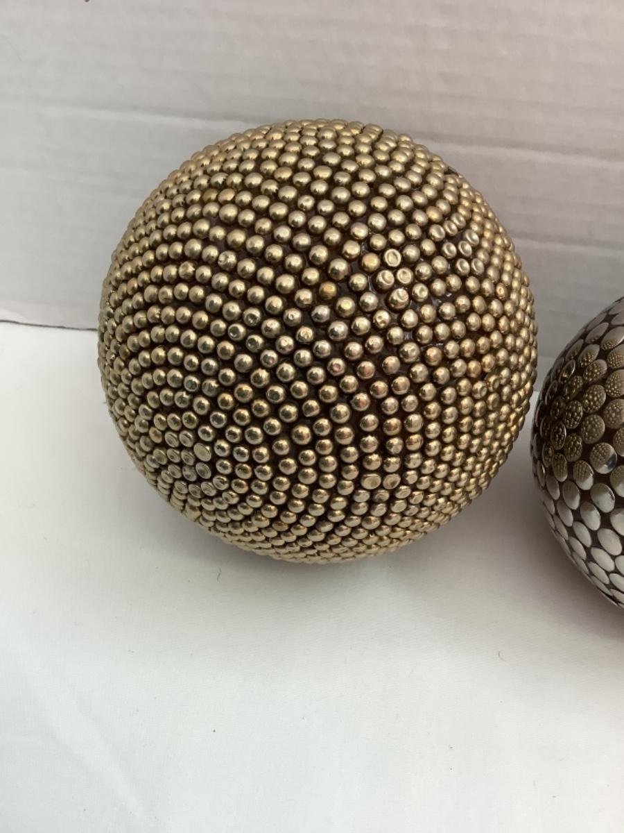 A - 366 One Vintage Brass Fitted Wooden Ball &  Three Textures Decorative Spheres