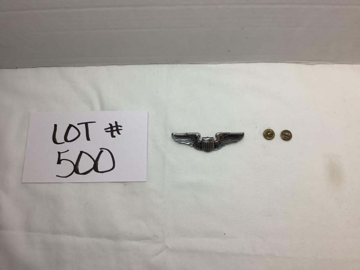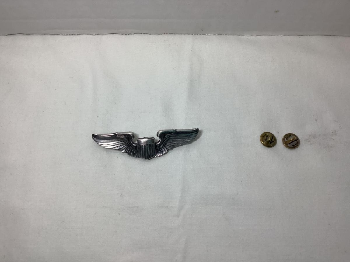 A - 500 WWII Army Air Force Pilot Sterling Silver Pinback Wing