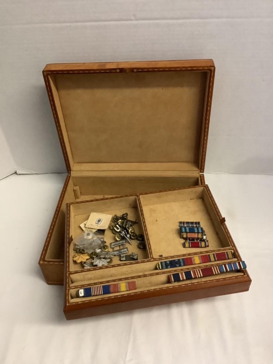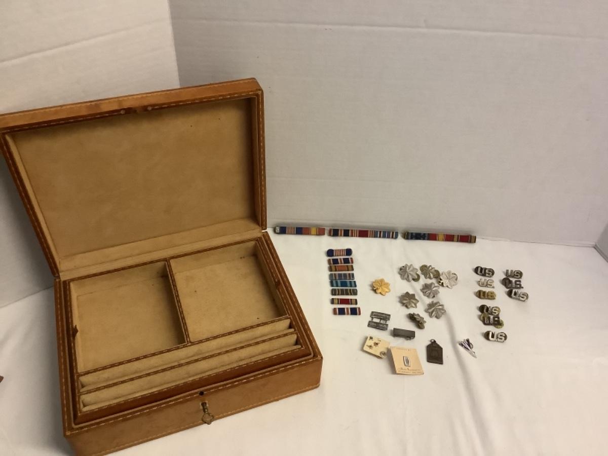 Lot of WWII U.S. Army Air Force Pins/Ribbons & Leather Storage Box